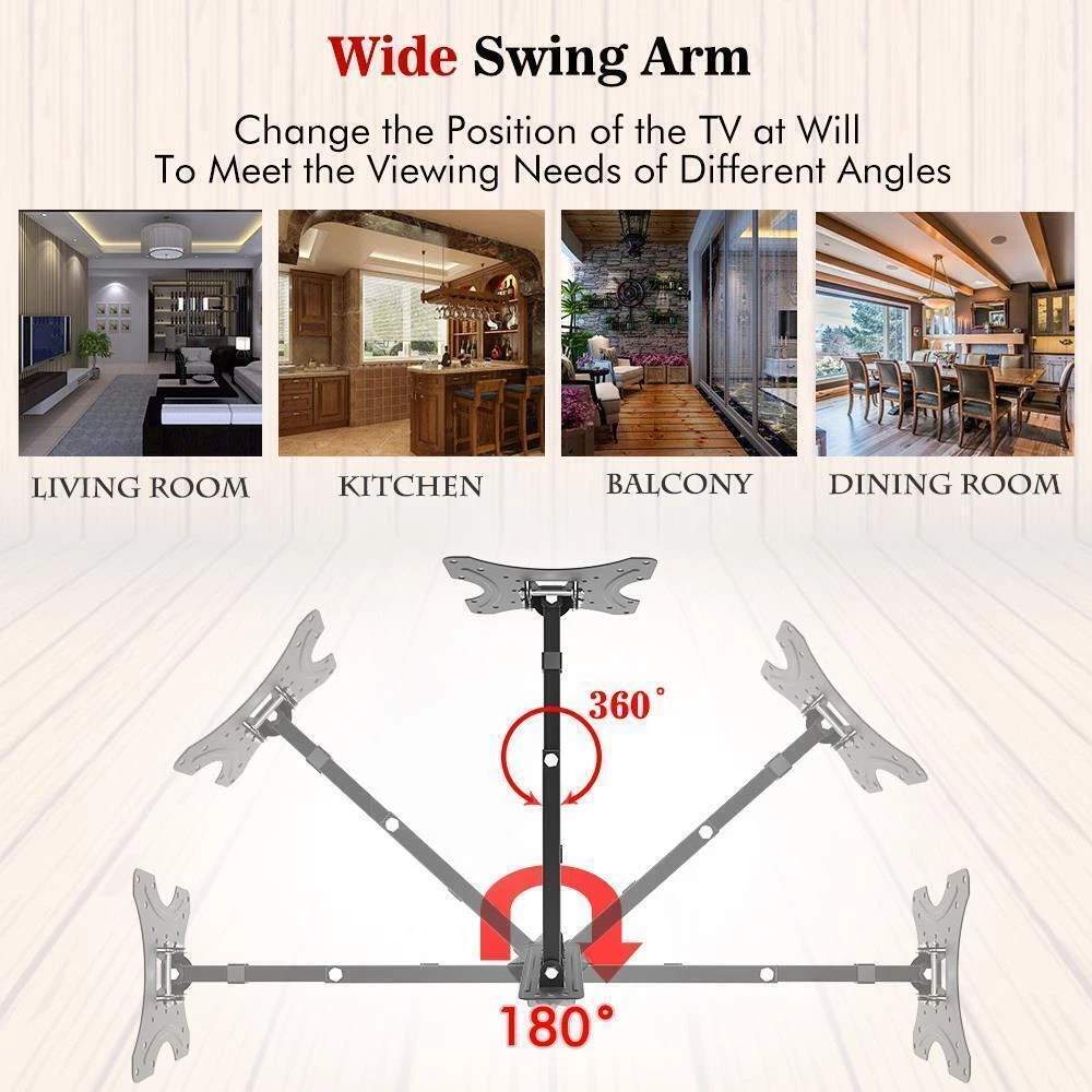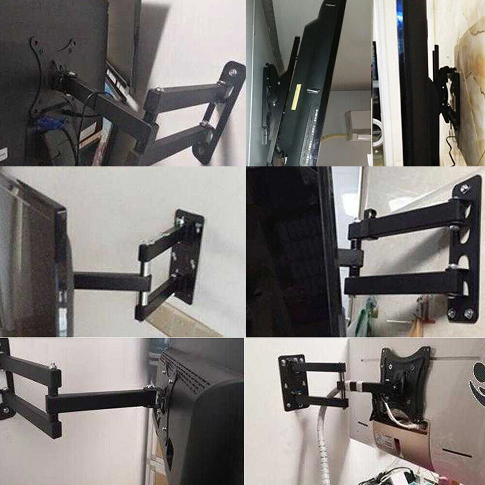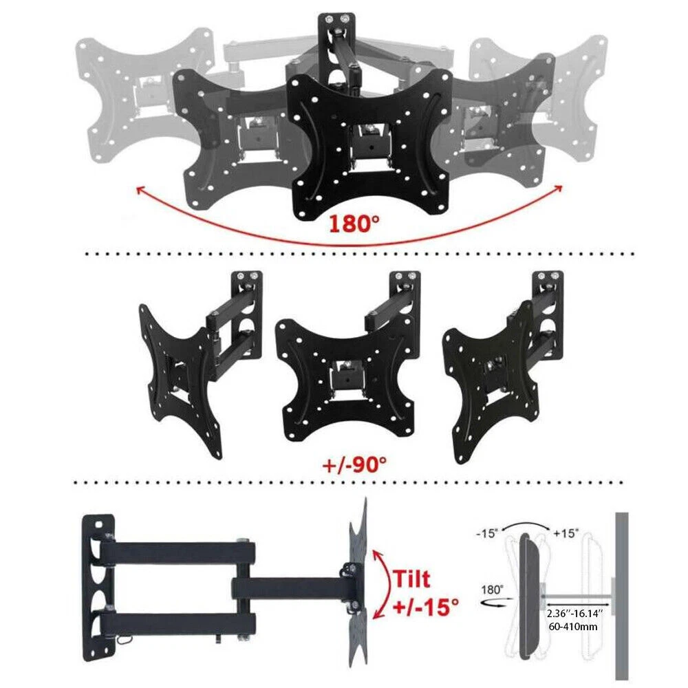 Product Description Specifications: Type: Full Motion TV Wall Mount Bracket Color: Black Material: Cold-rolled Steel Suitable TV Sizes: 14"-42" Load Capacity: 35kgs Distance to the Wall: 400mm/16" Adjustable: Tilt (-15 degrees, +5 degrees) | Swivel (-90 degrees, +90 degrees) Max VESA Mounting Pattern: 200 x 200 mm Use for: TV, Monitor, Projector, LCD, LED, OLED, Plasma Features: • This heavy duty TV stand has high standards and can fix the screen up to 42 inches, the largest. • Compatible with VESA • Mounting hole Pattern (200mm x 200mm) • Tilt 180°: the VESA board can be removed for easy Installation of one person. • Distance between Bracket and wall = 65-415mm • Reliable Quality: This heavy-duty bracket, made from premium cold-rolled steel, means your TV will stay sturdy and stable. It's designed for flatscreens TV's and can carry a load of up to 35kgs. You can be confident that your TV won't run into any "whoopsies" while viewing. Just install the bracket on the wall, mount your TV, and choose a corner to enjoy it. It's that easy! • Full Motion for Optimal Viewing: Full motion Mount your TV on this bracket to watch your favorite movie at the most comfortable angle. With a 180° left to right range of motion and upward and downward tilt of +5~-15°, this TV mount puts your screen at the perfect position for you or anyone to enjoy. • Save Space: This TV wall bracket has an adjustable wall space from 400mm. Planning to have company over for the evening? Simply retract the moveable arms to place into a fixed position to save space for your guests. • Easy Installation: Step-by-step instructions and all the necessary hardware is provided, single stud installation simplifies the placement of the TV/monitor on the wall. Removable TV plate designed for single-person installation which helps you to install this TV wall mount without any hassle Will this mount fit your TV? 1. Check the VESA of your TV whether it is under 200mm x 200mm; 2. Check the weight of your TV whether it is lighter than 35kgs; 3. Check whether your TV is within 14" to 42"; 4. For TV sizes bigger than 42", the TV wall mount bracket should be used with extension arms (the same with VESA holes bigger than 200*200). Available VESA range: • 400mm x 400mm (16"x16") • 400mm x 200mm (16"x8") • 200mm x 200mm (8"x8") • 200mm x 100mm (8"x4") • 100mm x 100mm (4"x4") Package Included: • 1 x Full Motion TV Mount Bracket • 1 x Assembly Manual • 1 x Complete Set of Screws and Other Fittings Required for Assembly Payment Shipping Returns Contact Us All Modes of Payment are acceptable,such as Apple pay, Google pay, PayPal, credit card, etc. We will deliver the items to you within the processing time. Please provide us your correct receiving address (include house number, Street name) , so that we can ship the order to you as soon as possible! If you need us to ship the items by other way, please feel free to contact us. Thanks! Please check your shipping address carefully before checkout, it can't be changed if order completed. If you are not satisfied with your purchasing, you can return the product and get a full refund. But we will not responsible for the shipping and people damaged. You can return a product for up to 30 days from the date you’ve purchased it. Please contact us to confirm the return address before you return the items. Incorrect/Faulty/Damaged Items: Please contact us to arrange for the return via eBay messaging or one of the numbers above. NO postage will be refunded unless agreed upon in email or writing prior to returning. Monday to Friday 9:00 am to 6:00 pm. We do not work holidays . If you send email to us,In our working hours will be resumed within 24 hours. If you we are not satisfied with the product or service ,please contact me and don't give us negative or natural feedback,We must give you a satisfactory solution. Payment All Modes of Payment are acceptable,such as Apple pay, Google pay, PayPal, credit card, etc. Shipping We will deliver the items to you within the processing time. Please provide us your correct receiving address (include house number, Street name) , so that we can ship the order to you as soon as possible! If you need us to ship the items by other way, please feel free to contact us. Thanks! Please check your shipping address carefully before checkout, it can't be changed if order completed. Returns If you are not satisfied with your purchasing, you can return the product and get a full refund. But we will not responsible for the shipping and people damaged. You can return a product for up to 30 days from the date you’ve purchased it. Please contact us to confirm the return address before you return the items. Incorrect/Faulty/Damaged Items: Please contact us to arrange for the return via eBay messaging or one of the numbers above. NO postage will be refunded unless agreed upon in email or writing prior to returning. Contact Us Monday to Friday 9:00 am to 6:00 pm. We do not work holidays . If you send email to us,In our working hours will be resumed within 24 hours. If you we are not satisfied with the product or service ,please contact me and don't give us negative or natural feedback,We must give you a satisfactory solution. powered by