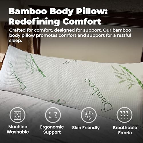 30 Days Return Policy Fast Delivery Trusted seller Full Rayon Bamboo Fiber Pillow Memory Foam Body Pillow for Side Sleeper, Huggable Long Body Pillow for Adults with Washable Pillowcase with Zipper, 20x54 Inch Product Description Premium Material: Made from high-quality rayon bamboo fiber, the memory foam body pillow offers ultimate softness and breathability. It's designed to regulate temperature and provide a comfortable, luxurious sleep experience for side sleepers. Memory Foam Core: The core of this 20x54 inch body pillow is crafted from memory foam, contouring perfectly to your body’s shape, providing excellent support and pressure relief, making it ideal for side sleepers seeking optimal spinal alignment. Ideal for Side Sleepers: The full body pillow is specially designed for side sleepers, offering complete body support from head to toe. The memory foam filling ensures proper alignment of your spine, hips, and knees, enhancing sleep quality. Huggable Design: The long, huggable body pillow design makes it the perfect cuddle companion for adults, providing great support for back, knees, and hips. Whether you're pregnant or need extra comfort, this pillow adapts to your body’s needs. Washable Pillowcase: This full body pillow comes with a washable body pillow pillowcase made from soft, durable bamboo fiber. It’s easy to remove and clean, ensuring your pillow stays fresh and hygienic after regular use, especially for side sleepers. Zippered Cover: Featuring a zippered pillowcase, this memory foam body pillow allows for easy removal and machine washing. The smooth zipper design ensures convenience and durability, while keeping your pillowcase securely in place at all times. Generous Size: With a size of 20x54 inches, this long body pillow for adults provides comprehensive support for the entire body. Perfect for both side sleepers and back sleepers, it cradles your body, improving overall sleep comfort. Shipping Returns Payment Shipping Shipping is FREE to all addresses other than APO/PO boxes in the lower 48 states. All our stock ships from US-based warehouses. Shipped via USPS or UPS (depending on location and package weight) Unless stated otherwise, all orders will ship within 24-72 hours of your payment being processed. Check our feedback to see the great reviews of FAST shipping we offer. Returns As our valued customer, we will do our best to make sure the product you receive arrives to you on time and as expected. If you are not satisfied with your purchase, please contact us within 30 days of receiving your order to process a return. Payment We currently accept payment via eBay managed payments only. Once payment is cleared, we will dispatch your shipment within 1-3 business days. Please refer to the "Shipping" tab for more information regarding shipping speed to your destination.