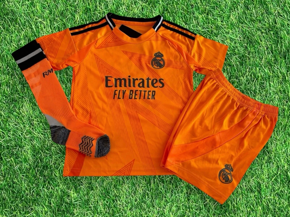 Full kids Mbappe jersey with socks for boys and girls from sizes 16-28. Contact seller for more detail.
