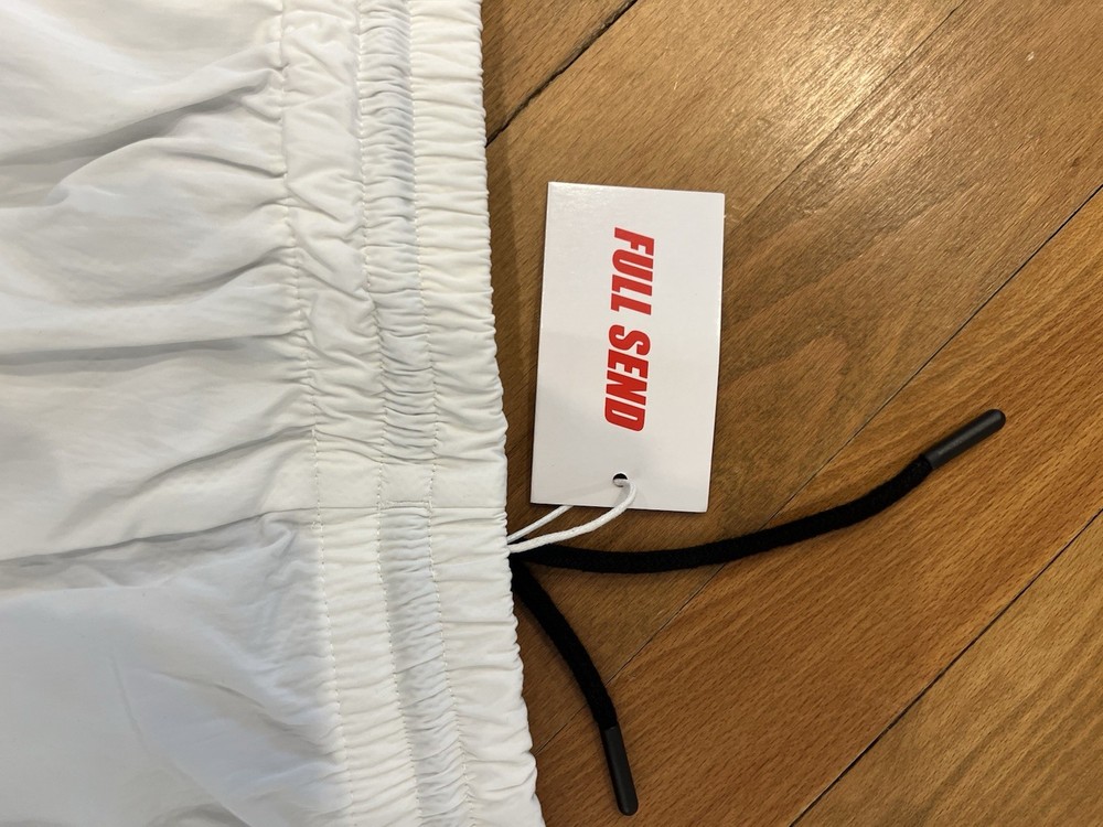 Crafted for comfort and style, these Full Send Parachute Pants are a must-have for any casual wardrobe. With a relaxed fit that ensures ease of movement, they're designed to cater to a regular size medium, perfect for creating a laid-back look. The windbreaker style offers an extra layer of protection against the elements, while the striking grey color gives these pants a versatile edge that pairs well with any top.Each detail, from the durable construction to the thoughtful design, reflects Full Send's commitment to quality. The 34-inch inseam provides a comfortable fit for all-day wear, and the pants are easily cared for, ensuring they maintain their sleek appearance with minimal effort. Ideal for men who value both functionality and design in their everyday attire.