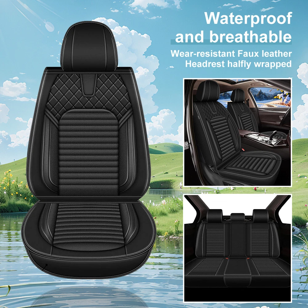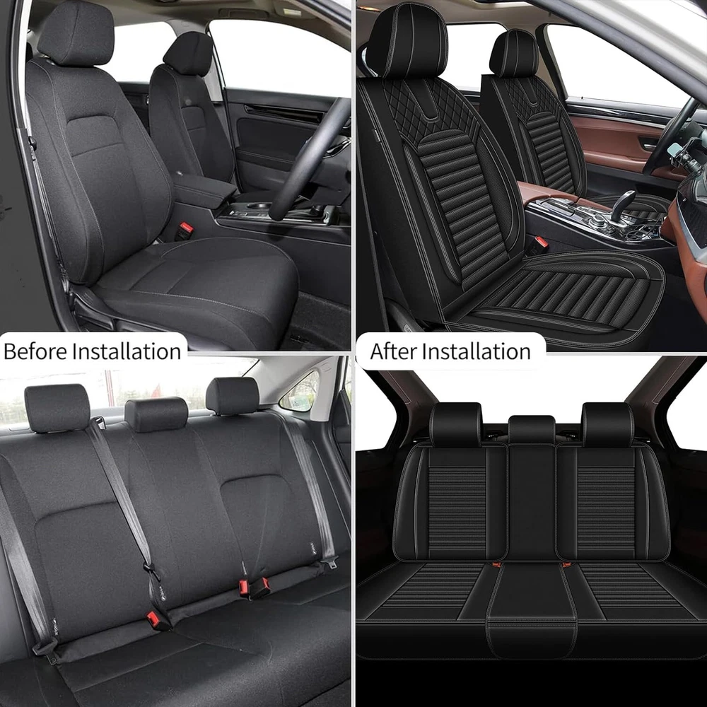 Notice All the pictures have been professionally corrected, but due to the different ambient light and different display device settings, there may be some deviations in the pictures and items you see, please understand! Feature ▼ Easy to clean: Wipe clean easily with just a damp towel, keeping your seat protects from stains, spills and damage. ▼ Easy to install: The package comes with an installation manual, please read it before you start the installation and you will be able to do it easily even if it is your first time. ▼ Safety: The front seats have airbag reserve ports on the side to ensure that the airbags can be popped out in case of emergency. The rear seat belt also completely exposed. ▼ Material: Premium faux leather is durable, breathable, comfortable and has good waterproof. The interior of the seat cover is filled with sponge, the appropriate thickness allows you to sit for a long time without getting tired. Specification Type: Car Seat Covers Color: Black Material: Faux leather Range of application: 5 sits cars, all seasons Fitment: Fit for For Chevrolet Trax 2015-2021 Package included 2* Front Seat Cover 1* Set of Rear Seat Cover 1* Bag of Accessories for installation