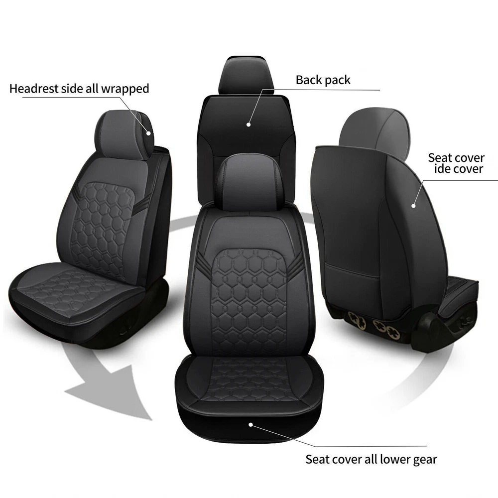 ▕★ ∨ ★▏Notice _ Please understand the car list NOT 100% correct! Most Seats will perfectly fit, but some Seats may not fit. Please refer to your vehicle model and check your seats carefully before placing the order. The item will be shipped according to your specific vehicle model, so please send us an email to inform us about the specific vehicle model and seat picture after placing the order. _ The picture is for reference only, due to the different ambient light and different display device settings, there may be some diference between the pictures with the items you see. Thanks for your understanding. 『Features』 Easy to install_The package comes with an installation manual of the car seat covers, please read it carefully before you start to install and you will be able to do it conveniently following the step of manual with magic sticker. Covenient to clean_ Wipe clean easily with just a wet towel, protect your car seat from stains, spills and damage. Safety_ The front seats have airbag reserve ports on the side to ensure that the airbags can be popped out in case of emergency. The rear seats safety belt also completely exposed. Material_ Premium faux leather is durable, wear resistant, breathable, non-slip, comfortable and has good waterproof. The interior of the seat cover is filled with sponge, the appropriate thickness allows you to sit for a long time without getting tired. There are 2 storage bags on the front seat covers that you can store small stuff. 『Specification』 Product Type_ Car Seat Cover Color_ Black+Grey Material_ Luxury Faux Leather Apllicable season_ All seasons Fitment_ Fit For Volkswagen Jetta 2008-2024 『Package Include』 ○ 2 Front Seat Covers ○1 Set of Rear Seat Covers ○ 5 Headrest Covers ○1 Bag of Accessories for Installation ○1 Intruduction Paper of Installation