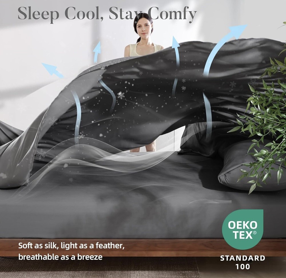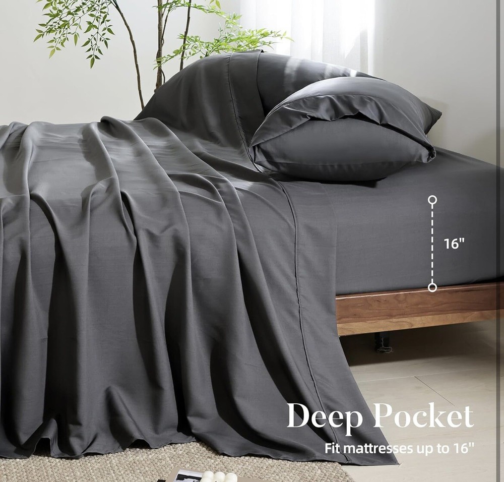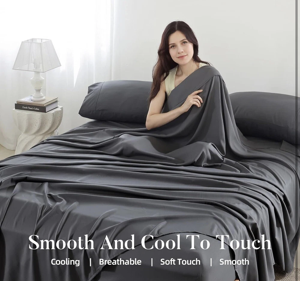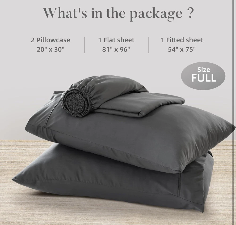 Experience the ultimate comfort with this Full Sheets Set, designed to offer a cooling and breathable feel as you rest. Crafted from bamboo-derived rayon, these sheets are a perfect blend of luxury and practicality, suited for everyday use. The modern, solid grey color complements any bedroom decor, providing a serene and sophisticated look. The set includes four pieces that fit a full-sized bed, ensuring a snug and secure fit. Each piece is machine washable and easy to care for, making maintenance a breeze. Indulge in the softness and quality of these rectangular-shaped sheets that promise to enhance your sleep experience.