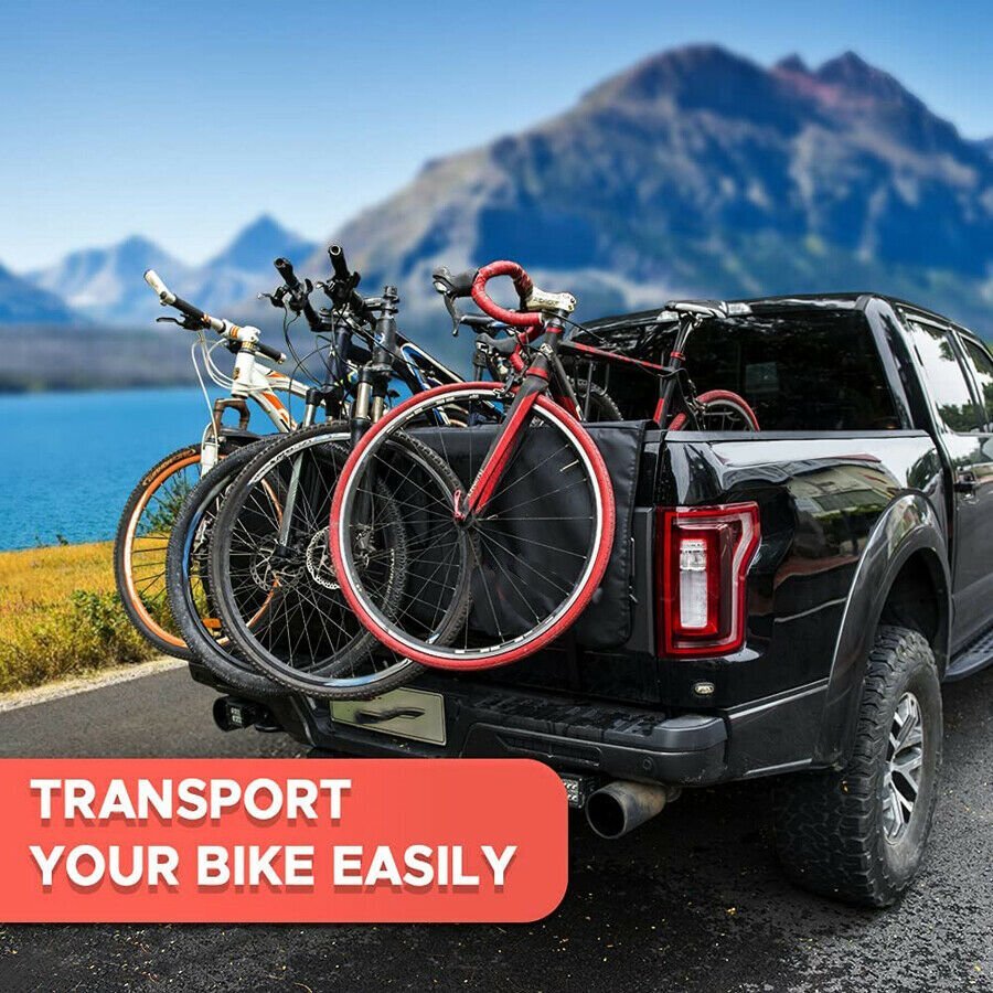 This tailgate pad is a game-changer for bike transport! It fits perfectly on my mid-size truck and holds six bikes securely without scratching the paint. The padding is thick and durable, protecting both my truck and bikes. The access flap makes opening the tailgate super convenient. Installation was quick, and it works with all my bikes—mountain, road, and even fat tires. Super sturdy and well-made, definitely worth the investment for any cyclist with a truck!