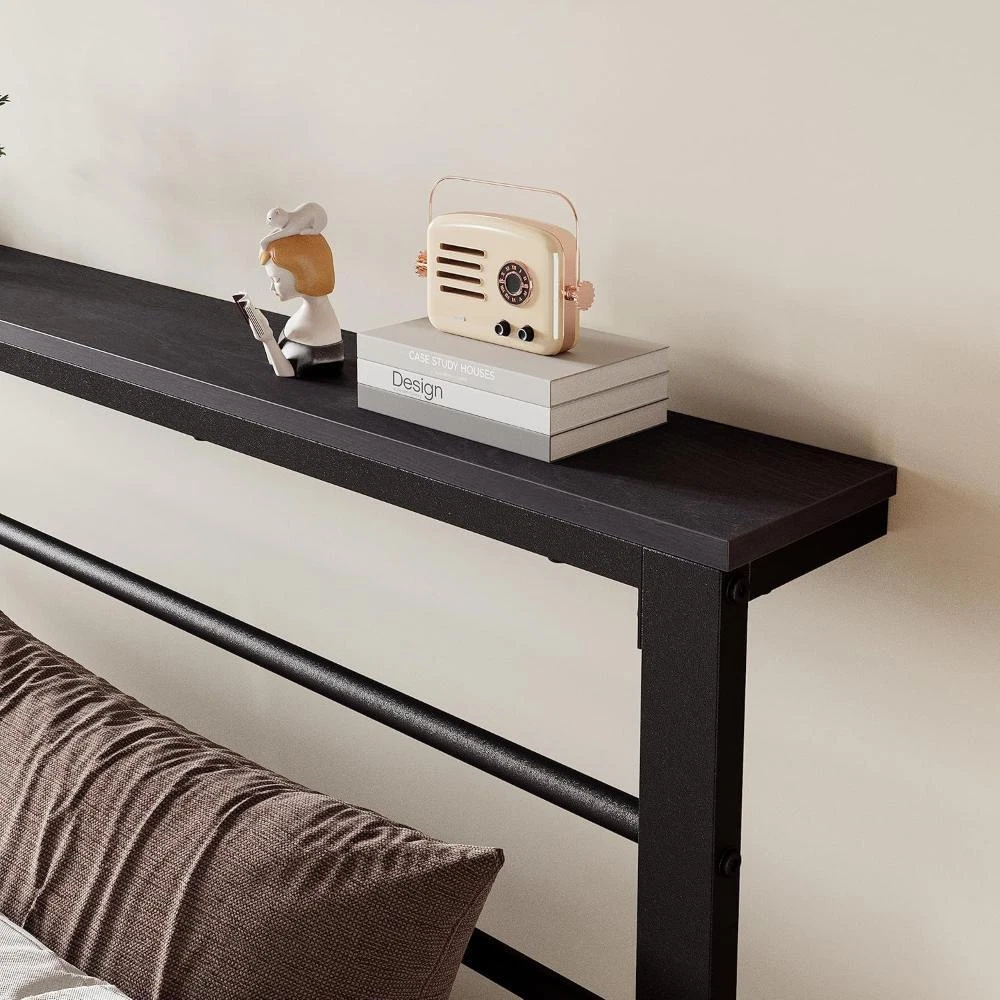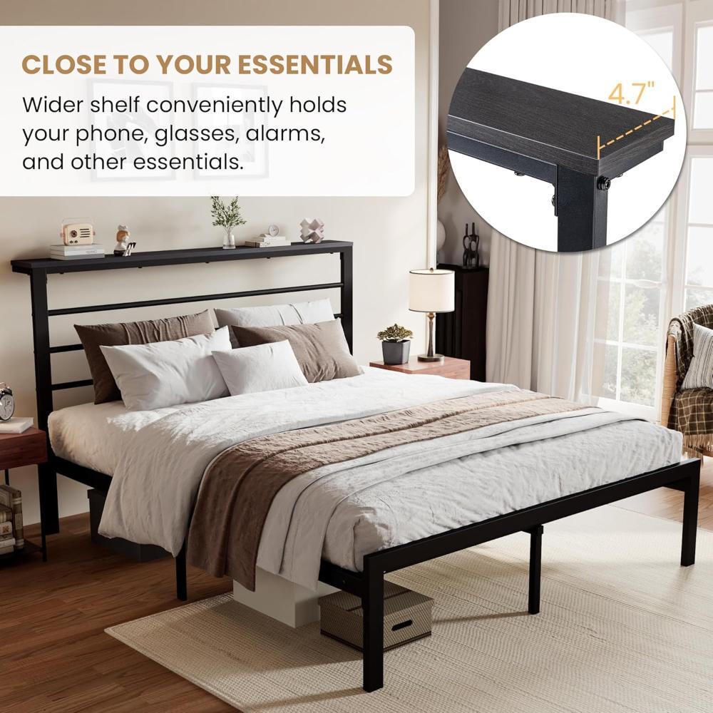 This full-size bed frame is a game-changer! The sturdy black shelf headboard keeps essentials within reach, while the noise-free slats ensure peaceful sleep. The 12.6" clearance underneath offers great storage space, and the durable, easy-to-clean design makes it perfect for any bedroom. Assembly was a breeze, and it feels rock-solid—no squeaks or wobbles. Love the modern look and practicality! Highly recommend for anyone needing a reliable, space-saving bed frame.