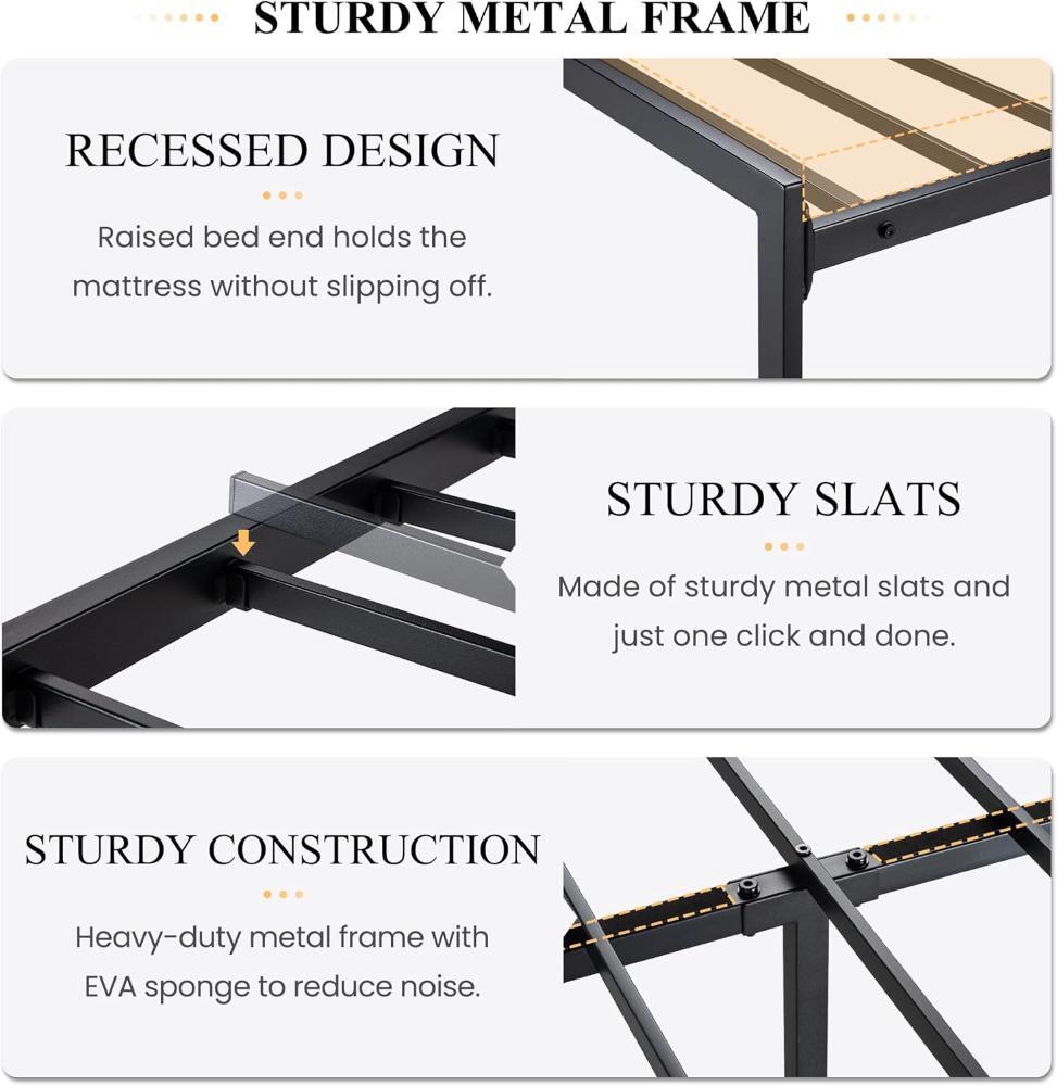 Full Size Bed Frame For 54x75 in Mattress Size Easy To Clean Durable Black Shelf Description About this item Practical Headboard Shelf: Widen shelf for keeping close to your essentials, it’s convenient to hold your phone, glasses, alarms, and other essentials. Say Goodbye to Noise: Slats embedded design with EVA sponge prevent the slats from friction and making noise. Provide you with a quiet sleeping environment. Ample Storage Space: The 12.6" height clearance of the frame allows for easy under-bed storage for your stuff and is also easy to clean. Easy Assembly: Everything you need is in one package, of course, including detailed instructions. It only takes 30 minutes to install this bed frame, even if you are a rookie. No Box Spring Needed: Reliable and closely spaced slats are designed to support and extend the life of your memory foam or spring mattress without the need for a box spring. Delivery We Do Not Ship Outside of the Continental US. Return Policy All items qualify for returns within 30 days of receipt. Buyer is responsible for return shipping on any item that is not damaged. Feedback We take our reputation seriously, we buy and sell online, so we understand the value of trust. If you are unsatisfied with your order, please contact us and we will work with you to resolve it to your satisfaction.