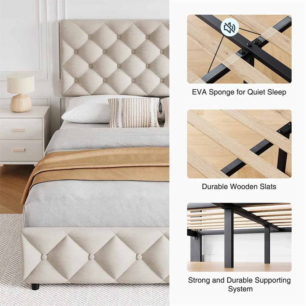 $ 95.3☑️Full Size Bed Frame with 4 Storage Drawers and Headboard Upholstered Platform