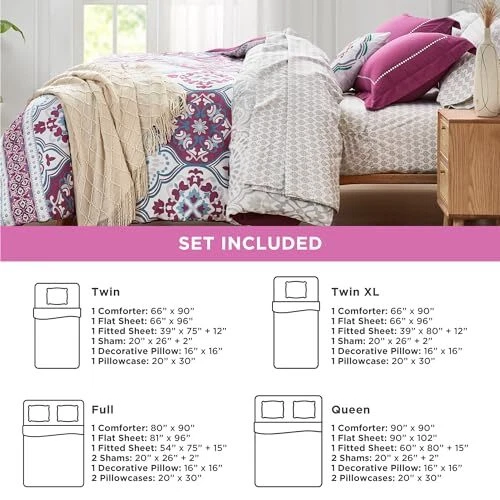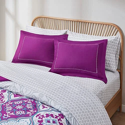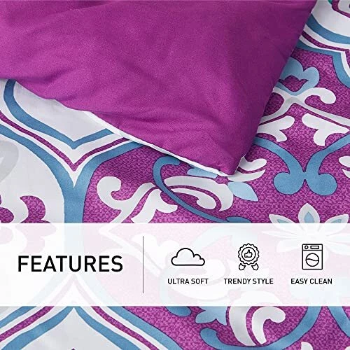Return Policy Fast Delivery Trusted seller Full Size Complete Comforter Sets, Lattice Boho Bed in A Bag,Microfiber Bedding Set with Side Pockets, Matching Decorative Pillow, 8 Piece Purple Product Description All In One: Revitalize any bedroom with this complete bed-in-a-bag set. Update all at once, showcg your great taste in bedroom decor. Save by purchg as a bundle without shopping for each piece separately. 8 PIECES INCLUDED: 1 Comforter, 1 Decorative Pillow, 1 Flat Sheet, 1 Fitted Sheet, 2 Standard Pillowcase, 2 Standard Shams Boho Colors and Side Pocket: Our comprehensive bedding collection includes a comforter and sheet set available in a range of vibrant colors and stunning patterns, including Navy, Purple, Coral, and Aqua. Add a touch of brightness to your space with our bohemian medallion lattice floral design. The fitted sheet integrated side pockets, offering secure and convenient storage for items such as remotes and earphones. Cozy and Comfort: From the Linens to the Comforter, Pillowcases, and Accent Pieces, crafted in soft microfiber offers excellent durability and designed to maintain a fresh look for years. The gentle touch is ideal for year-round coziness. Premium polyester filling provides a breathable, relaxing feeling. This is certainly a bedding collection that will provide a restful and enjoyable sleep experience. Washing Instruction: Easily clean and care for your Degree of Comfort bedding set. Spot Clean for pillows. For other items, hand wash or machine wash cold and separately. For best results, wash with free and clear detergent at low temperature on gentle cycle. Do not bleach or iron. Shipping Returns Payment Shipping Shipping is FREE to all addresses other than APO/PO boxes in the lower 48 states. All our stock ships from US-based warehouses. Shipped via USPS or UPS (depending on location and package weight) Unless stated otherwise, all orders will ship within 24-72 hours of your payment being processed. Check our feedback to see the great reviews of FAST shipping we offer. Returns Seller does not accept returns Payment We currently accept payment via eBay managed payments only. Once payment is cleared, we will dispatch your shipment within 1-3 business days. Please refer to the "Shipping" tab for more information regarding shipping speed to your destination.