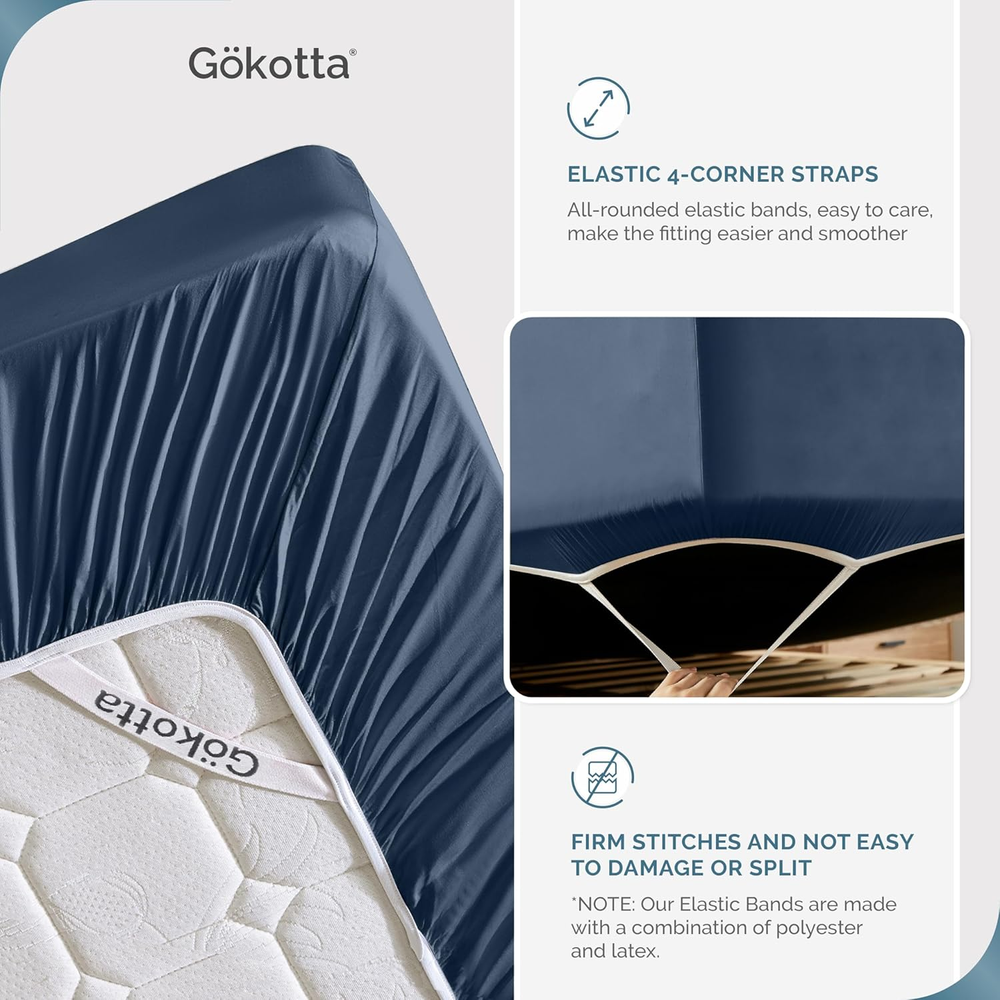 Store New Arrivals Add to Favorite View Feedback Contact Full Size Bed Sheets 4 Piece Set, 100% Rayon Derived from Bamboo, Cooling for Hot Sleepers-Luxury Breathable Soft Sheets, Deep Pocket 15" Fitted Sheet with Elastic Corner Straps, Navy Blue Description Item model number Full Style Modern Pattern Solid Country of Origin China Theme nature Number of Pieces 4 Unit Count 4.0 Count Material Rayon Derived from Bamboo Item Display Dimensions 9.84 x 5.91 x 3.15 inches Age Range (Description) All Seasons All, Summer, Spring Closure Type Envelope Item dimensions L x W x H 7 x 5.9 x 9.84 inches Item Weight 4.16 pounds Special Feature Fully Elasticized, Hypoallergenic, Moisture Wicking, Reversible and envelope closure pillowc cases, fitted sheet with elastic corner straps, cooling for hot sleepers, Up to 15" deep pocket. Super luxury soft sheets set., Breathable Color 07 Navy Blue Thread Count 300 Included Components Pillowcase * 2, Flat Sheet * 1, Fitted Sheet * 1 Product Dimensions 7 x 5.9 x 9.84 inches Product Care Instructions Machine Wash Size Full Imported 100% Rayon Derived from Bamboo REDEFINE YOUR SLEEP - Experience the comfort and cooling with our 100% Rayon Derived from Bamboo full size sheets. Super soft, silky and breathable, it supports a peaceful night's sleep like no other STAY IN PLACE - fitted sheet is designed with 4 elastic corner straps and 360 degrees elastic strap which will perfectly stay in place all nights. Gokotta full size bed sheets with 4 elastic bands are made with a combination of polyester and spandex UPDATE YOUR LIFESTYLE – Super Soft Sheets crafted with precision, it boasts a high 300 thread count and exceptional moisture-wicking properties. Perfect for health-conscious and cool for hot sleepers Product Description Deep Pocket Up to 16" GOKOTTA Experience Ultimate Comfort with GOKOTTA 100% Bamboo Rayon Sheets GOKOTTA Bamboo Rayon Sheets are Made from 100% bamboo rayon, without blending other fabrics, these sheets are highly breathable and cool to the touch, making them ideal for those with sensitive skin. The 300-thread count sateen weave provides a luxuriously silky feel , ensuring a truly restful night's sleep. 1 Sheets With Corner Straps 2 300 Thread Count 3 OEKO-TEX Certification 4 Ultra Soft Sheets 5 Size Chart Multi-color Real Shot Display 1 Multiple Color 2 Pillow Cases 3 Latex-free Elastic 4 Warm Tips ABOUT US We offer the best prices around on high quality products. Our E-store includes media such as books, movies, music and games while offering electronics, toys, sporting apparel, clothing, tools, general home, garden items and more. SHIPPING We are always working hard to ensure your package arrives as soon as possible. Please understand that some factors like weather, high postal traffic, and the performance of shipping companies are outside of our control. We offer free shipping to the lower 48 states and ship within 2 business days of payment, usually sooner. We do not accept P.O. Boxes. Please provide a physical address. For shipping outside of the continental USA, we only use eBay's Global Shipping Program.The item is shipped to KY and then sent to the rest of the world. International customers are responsible for all duties and taxes. Continue to check out in order to calculate costs for shipping the item to your country. Messages regarding eBay's Global Shipping Program MUST be directed at eBay EXCLUSIVELY. RETURNS We offer a 30-Day Return Policy on items which you are not completely satisfied with. You have the option for a full-refund or an exchange of the item. No returns are available on items shipped outside of the USA. PAYMENT We accept PayPal. CONTACT US This page content is yet to come Please ad us to your favorite seller and visit again later Thank You CUSTOMER SATISFACTION We try our very best to make sure every customer is completely satisfied. If there's a problem, message us! We're happy to help.