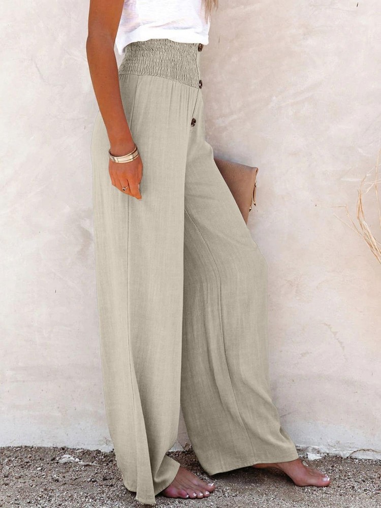 Love these high-waisted pants! The decorative buttons add a stylish touch, and the 100% cotton fabric is super comfortable. They fit perfectly and feel great—super flattering and easy to care for. Definitely a wardrobe staple!