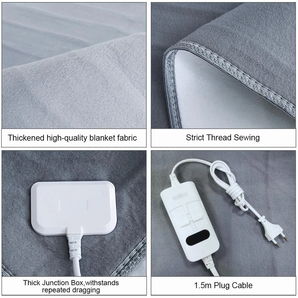 New Full Size Electric King Blanket Heated Sherpa Twin Bed Fleece Heat Eu Size Product Title: Electric Blanket 220V - Thicker Automatic Thermostat Heated Blanket for Ultimate Comfort Product Description: Stay warm and cozy during chilly nights with our premium Electric Blanket. Designed with comfort and safety in mind, this thermal mattress provides a luxurious heating experience for your room. Key Features: Sizes Available: Single: 70 x 150 cm Material: Plush fabric for a soft and comfortable feel. Voltage: 220V Switch Type: Remote control for easy operation. Safe & Reliable: Designed with built-in safety measures for worry-free use. Important Usage Instructions: Suitable for use under bedding only. Do not wash or dry-clean the blanket. Avoid inserting pins or sharp objects into the blanket. Do not use if the blanket is wet or damp. Always unplug when folded or when not in use. Not suitable for babies or elderly individuals who cannot care for themselves. Avoid placing heavy items on the blanket, especially when folded. Pro Tip: For optimal heating, place a thick quilt over the electric blanket and let it warm up for 30–60 minutes before use. Note: All sizes are measured manually, so slight variations (2-4 cm) may occur. We appreciate your understanding. Shipping Fast Shipping Worldwide Returns We accept returns 30 days from the package received. Payments All payments are accepted via PayPal. Feedbacks The product came very well packaged. I'm very happy. thank you for everything. Seller strongly recommended. This is great! I recommend! The product looks amazing. Delivery was fast. Excellent seller, great communication. I advise everyone.