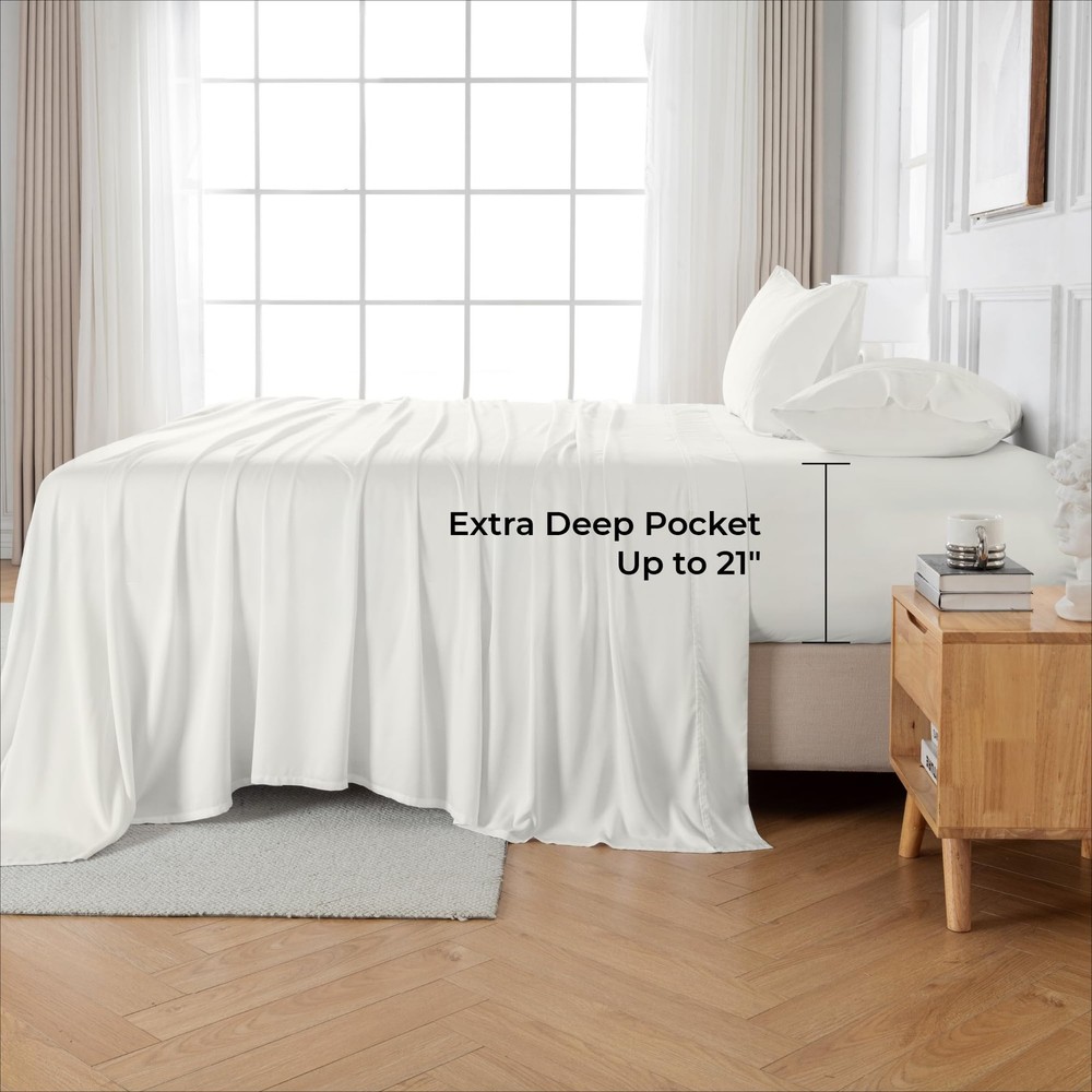 $ 71.42Deep Pocket King Bamboo Rayon Sheets Fits Mattresses Up to 18 Inches