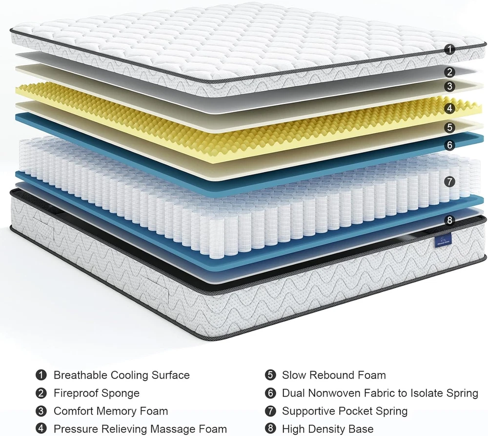 Store New Arrivals Add to Favorite View Feedback Contact Full Size Mattress, 10 Inch Hybrid Full Mattress in a Box, Double Mattress with Memory Foam and Pocket Spring, Ergonomic Design & Pressure Relief, Medium Firm Feel, 54"*75"*10" Description Item model number full size mattress Style 10 inch Item Weight 505 Pounds Item Firmness Description Medium Coil Type Pocketed Coil Color Black and White Is Discontinued By Manufacturer No Cover Material knitted fabric Top Style Euro Top Item Weight 50.5 pounds Fill Material Memory Foam Model Name full size mattress Age Range (Description) Adults Kids Construction Type Hybrid Special Feature Orthopedic, Pressure Relief, Breathable, Low Motion Transfer, Cooling Product Dimensions 75"L x 54"W x 10"Th Size Full Individual Pocket Spring: Supported by hundreds of quality and stainless Individual pocket spring, each spring work independently to offer an all-over and average support to 7 parts of your body (Feet, legs, hips, waist, shoulders, neck, head). Excellent shock-absorption and resilience, cater your vertebral well, help adjust and correct your sleeping posture. Note: Please keep distance when opening the mattress from the plastic packing, as it may have a risk to hit back when restoring Vesgantti Luxury Support System: Memory foam and pocket spring support system also provide more buffers for your body, help relieve back pain, greatly improve your sleeping quality Breathable and Healthy: Ultimate luxury slow springback foam made of high density and first-class temperature-sensitive material, fiberglass-free, cooling, breathable and comfortable, can expel the steamy sweat from the contact surface between you and mattress so to keep body comfortable and dry when sleeping Ultra Quiet: Built-in high quality Individual pocket spring and slow springback foam, can effectively absorb the noise and vibration caused by tossing and turning when sleep, no waking up by the noise, not disturb companion and effectively reduce your turning times, let you sleep soundly and peacefully Vacuum Roll Packed: It is delivery, compressed, vacuum sealed and neatly rolled in a box. Smaller size, easy to carry. Please allow 48 hours for the mattress to fully expand after unpacking. Thickness measurement tip: the distance from the height of the fully expanded foam to the bottom of the base. Please note: once the mattress open and restore, it cannot be roll back again Product Description 1 MEDIUM FIRM MATTRESS 2 MATTRESS in a BOX 3 MULTIPLE SIZES & BASES Other Products You Can Choose Add to Cart Add to Cart Add to Cart Add to Cart Add to Cart Add to Cart Add to Cart Customer Reviews 4.4 out of 5 stars 7,433 4.4 out of 5 stars 32 4.5 out of 5 stars 944 4.6 out of 5 stars 195 4.3 out of 5 stars 1,558 4.3 out of 5 stars 1,006 4.4 out of 5 stars 1,591 Price $239.99 $ 239 . 99 $359.99 $ 359 . 99 $139.98 $ 139 . 98 $289.98 $ 289 . 98 $239.99 $ 239 . 99 $189.99 $ 189 . 99 $219.99 $ 219 . 99 Style Mattress Mattress Bed Frame Bed Frame Mattress Mattress Mattress Material Foam+ Pocket Spring Memory Foam Fabric Fabric Foam+ Pocket Spring Foam+ Pocket Spring Foam+ Pocket Spring Color White and Black Dark Gray Dark Gray Beige Black Grey Blue and White Size Twin/Twin XL/Full/Queen/King Twin/Twin XL/Full/Queen/King Full/Queen/King Full/Queen/King Twin/Full/Queen/King Twin/Twin XL/Full/Queen/King Twin/Twin XL/Full/Queen/King Height 8/9/10/12/14inch 12/14inch 48" 50.6" 10/12inch 10/12inch 10/12inch Features Pressure Relief Cooling Graphene Technology Type-C&USB Ports 50.6" High Headboard Pillow Top Mattress Pressure Relief Pressure Relief ABOUT US We offer the best prices around on high quality products. Our E-store includes media such as books, movies, music and games while offering electronics, toys, sporting apparel, clothing, tools, general home, garden items and more. SHIPPING We are always working hard to ensure your package arrives as soon as possible. Please understand that some factors like weather, high postal traffic, and the performance of shipping companies are outside of our control. We offer free shipping to the lower 48 states and ship within 2 business days of payment, usually sooner. We do not accept P.O. Boxes. Please provide a physical address. For shipping outside of the continental USA, we only use eBay's Global Shipping Program.The item is shipped to KY and then sent to the rest of the world. International customers are responsible for all duties and taxes. Continue to check out in order to calculate costs for shipping the item to your country. Messages regarding eBay's Global Shipping Program MUST be directed at eBay EXCLUSIVELY. RETURNS We offer a 30-Day Return Policy on items which you are not completely satisfied with. You have the option for a full-refund or an exchange of the item. No returns are available on items shipped outside of the USA. PAYMENT We accept PayPal. CONTACT US This page content is yet to come Please ad us to your favorite seller and visit again later Thank You CUSTOMER SATISFACTION We try our very best to make sure every customer is completely satisfied. If there's a problem, message us! We're happy to help. WE ACCEPT Copyright © 2021 AutoDS. | All Rights Reserved