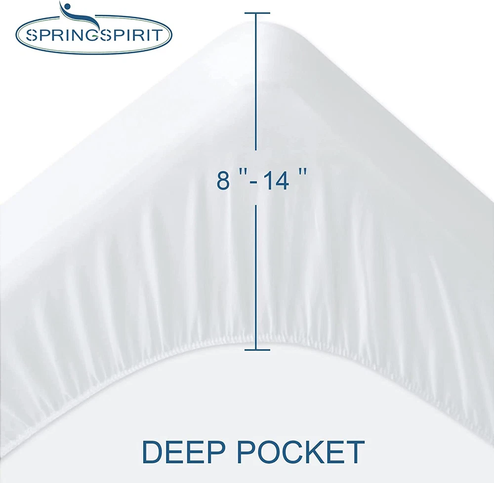 Breathable Terry Surface Ultra Soft & Breathable Fabric: Ful size mattress protector top side is made from terry, which is a skin friendly and ultra soft fabric. With the waterproof membrane laminated back, it can protect your mattress from spills, liquids and stains, especially suitable for those with kids, pets, or elderly. 100% Waterproof & Noiseless: This full mattress protector is lined with premium waterproof material (TPU) to prevent leakage. And we perfectly control the thick of membrane, it remains quiet however you turn. Strong Elastic & 360° Snug Fit: Our full size mattress protector perfectly fits mattress of most sizes. It's easy to install. Our waterproof mattress protector are available in a range of sizes: Twin (39" x 75"), Twin XL (39" x 80"),Full (54" x 75"), Full XL (54" x 80") Queen (60" x 80"), King (76" x 80"), California King (72" x 84"). You can always find the one that you need. Easy Care & Machine Washable: Machine washable and tumble dry a low setting. We would recommend purchasing 2 full size mattress protectors, so you will have a replacement when accidents occur. Springspirit's Life-time Guarantee: Springspirit's quality you can trust. If our full size mattress protector does not meet your needs for any reason, replacement or money back, no questions asked! Product Description The video showcases the product in use. The video guides you through product setup. The video compares multiple products. The video shows the product being unpacked. 1 Always Dry & Clean 2 Snuggly Fit More Related Products for Your Choice! Add to Cart Add to Cart Add to Cart Add to Cart Add to Cart Add to Cart Add to Cart Customer Reviews 4.5 out of 5 stars 8,772 4.5 out of 5 stars 1,770 4.2 out of 5 stars 501 4.5 out of 5 stars 8,772 4.5 out of 5 stars 292 4.4 out of 5 stars 60 4.6 out of 5 stars 784 Price $12.89 $ 12 . 89 $9.99 $ 9 . 99 $17.99 $ 17 . 99 $15.99 $ 15 . 99 $18.99 $ 18 . 99 $19.99 $ 19 . 99 $22.99 $ 22 . 99 Out Fabric Terry Jersey Microfiber Jersey Microfiber Terry Terry 3D Air Fiber Polyester Color White White White/Grey/Navy/Black White White White Black/Navy Size Twin/Full/Queen/King Standard/Queen/King Twin/Queen Crib/Twin Standard/Queen/King Twin/Full/Queen Twin/Full/Queen/King Waterproof ✔ ✔ ✔ ✔ ✔ ✔ Machine Washable ✔ ✔ ✔ ✔ ✔ ✔ ✔