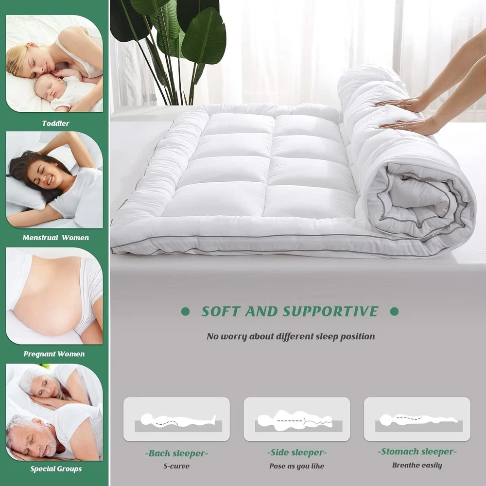 Full Size Padded Mattress Cover with Deep Pocket & Cooling Bamboo Fabric ‹ › ‹ › ‹ › ‹ › ‹ › ‹ › ‹ › ‹ › ‹ › Full Size Padded Mattress Cover -Deep Pocket & Cooling Bamboo Fabric -55% Microfiber + 45% Rayon from Bamboo Features: Optimum thickness designed to provide pressure points relief. Thicker and softer than similar mattress pads for enhanced support. Oeko Certified material ensuring the absence of harmful substances. Made of skin-friendly rayon from bamboo and 3D snow down alternative filling. Double border design with box quilting construction keeps filling securely in place. Deep pocket design fits mattresses up to 22 inches snugly. 360° full wrap design ensures a secure fit without frequent adjustments. Machine washable for easy care and maintenance. Benefits: Transforms an old, stiff mattress into a plush, comfortable sleeping surface. Outstanding softness and elasticity make your mattress feel super fluffy. Relieves pressure points while ensuring a restful night’s sleep. Designed for various sleep positions, ensuring comfort regardless of how you sleep. Durable construction that maintains its quality through multiple washes. Dedicated customer satisfaction with responsive support. Why choose our Full Size Padded Mattress Cover? Are you struggling with an uncomfortable mattress that leaves you restless at night? Experience the transformative comfort of our Full Size Padded Mattress Cover made with cooling bamboo fabric. Perfectly engineered for optimum support and plushness, this mattress pad is Oeko Certified and features a double border design to ensure even filling distribution. Designed with convenience in mind, its deep pockets can fit mattresses up to 22 inches, allowing for a secure fit without the hassle of constant adjustments. Plus, it’s machine washable, making maintenance a breeze. Invest in a delightful sleeping experience today, and awaken each morning refreshed and revitalized. Order yours now and embrace the comfort your sleep deserves! Shipping Free & Fast Shipping - We offer free shipping to most of the USA with a normal delivery time of 3-7 days. However, due to the current situation, additional delivery time (up to 3 weeks) may be required for some items. Alternative Carriers - We may use alternative carriers (e.g. USPS, FedEx, UPS, etc.) to ensure your package arrives safely and on time. Due to the use of multiple carriers, we are unable to provide a tracking number automatically. Handling Time - Orders are processed and shipped within 1-2 business days of receiving cleared payment. Shipping Restrictions - Shipping to Alaska, Hawaii, Puerto Rico, Guam, and other US territories may incur shipping charges or delivery restrictions. Please contact us before ordering, or your order can be refunded/cancelled. State Restrictions - There may be restrictions based on your state of purchase. For example, certain items may not be shipped to California due to state regulations. Contact for Tracking Updates - If you require tracking updates or have any concerns about the delivery of your order, please feel free to contact us, and we will be happy to assist you. Return 30-Day Hassle-Free Returns - We want you to be completely satisfied with your purchase. If you are not, you can return the item within 30 days of receiving it for a full refund or exchange. Easy Return Process - To start a return, simply contact us and we will provide you with a prepaid return shipping label and detailed instructions. Restocking Fee - There are no restocking fees for returns. However, the buyer is responsible for return shipping costs if the return is not due to a seller's error. Refund Processing Time - Refunds will be processed within 5 business days of receiving the returned item in its condition. Payment We accept all major credit cards, PayPal, and Apple Pay for your convenience. Your payment information is secure and encrypted to ensure a safe and seamless transaction. Please complete your payment within 3 days of purchase to avoid any delays in shipping. Feedback Your feedback is extremely important to us. We strive to provide the best products and customer service possible. If you are satisfied with your purchase, please take a moment to leave us a positive review. If you have any concerns or issues with your order, please contact us before leaving negative feedback. We are committed to resolving any problems and ensuring your satisfaction. Contact Us If you have any questions or concerns, please feel free to out to our customer support team. You can contact us through the eBay messaging system. We are available Monday to Friday, 9:00 am to 5:00 pm EST, and we will do our best to respond to your inquiry within 24 hours. Buy it now and enjoy a pleasant shopping experience! Unit Quantity: 6.85 Material: Microfiber,Rayon from Bamboo Features: Cooling,Machine Washable Care Instructions: Machine Wash Department: Kids Room: Bedroom Size: Full Type: Mattress Pad Color: White Closure Type: Pull On Insulation: All Seasons Shape: Rectangular Style: Modern Thread Count: 300 GSM (Grams per Square Meter): 301 to 450 Unit Type: lb