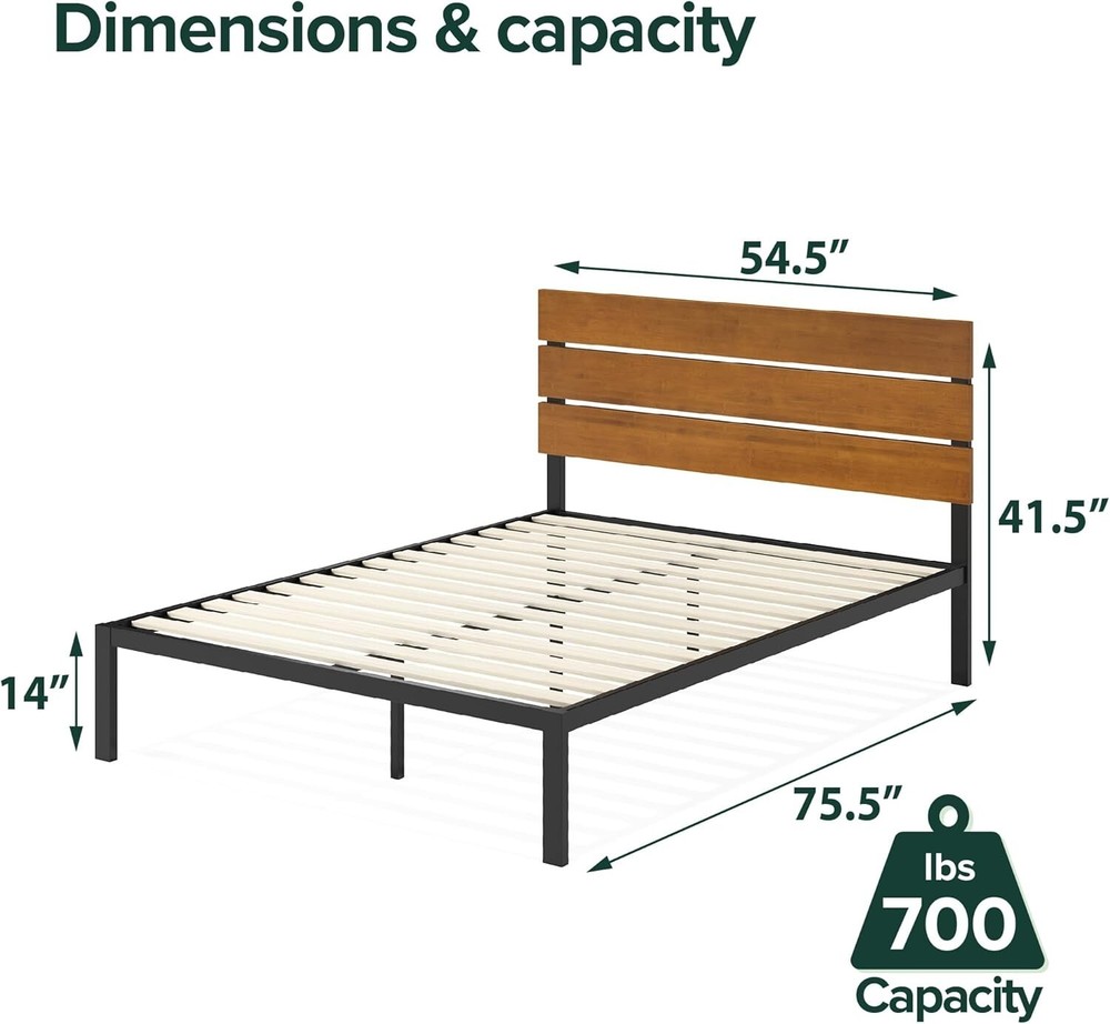 Full Size Platform Bed Frame Metal Heavy Duty 14 Inch Mattress Steel Foundation