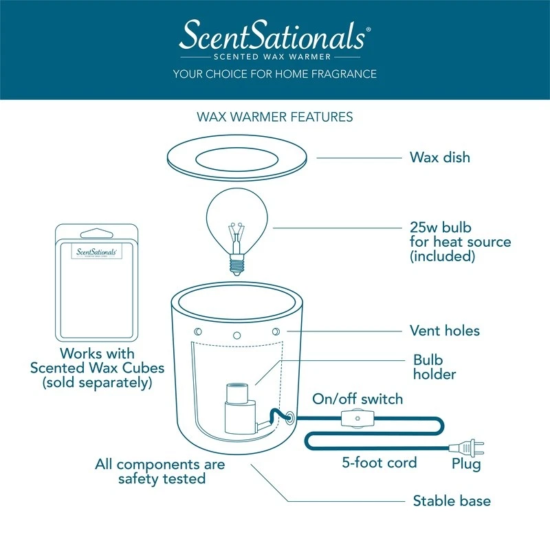 Chicken Catnip Cheese Dental Treats Cats Crunchy Soft Snack 48oz Mixups New 15.53 USD Free shipping Wet Dog Food Chopped Ground Dinner Beef Canned Adult Nutrition 4 Pack 22oz Cans 17.23 USD Free shipping 9-Shelf DVD Media Rack Adjustable Storage Organizer Home Office Living Room New 48.96 USD Free shipping Electric Heated Blanket Soft Warm Auto-Off 5 Heat Settings Safe Eco-Friendly New 43.42 USD 46.69 USD Free shipping 7% off 9-Shelf Adjustable Media Storage Rack DVD CD Blu-ray Game Cases Organizer New 48.96 USD Free shipping Cozy Electric Heating Blanket Faux Fur Soft Warm Throw Home Office Use 55.51 USD 59.69 USD Free shipping 7% off 300ct Baby Wipes Light Fresh Chamomile Hypoallergenic Soft Thick Resealable New 12.79 USD Free shipping Premium BBQ Apple Wood Chunks Smoking Grilling 500 Cu In Natural Flavor New 16.36 USD Free shipping Christmas Window Silhouette Lights 4 Pack Snowflake Snowman Deer Bell Decor New 51.88 USD 55.79 USD Free shipping 7% off Prismatic Iridescent Christmas Snowflake LED Decoration Kids Room Indoor New 38.59 USD 41.49 USD Free shipping 7% off Silver Pop-Out Streamers 14 Count Decorative Wedding Celebration Party Supplies 39.12 USD Free shipping Crossbow Soft Case W/ Self Healing Zippers & Adjustable Sling Camo Design New 33.14 USD Free shipping The Charleston Wax Full-Size Scented Wax Warmer brings style and functionality to your home. This tabletop wax warmer gently melts scented wax, releasing aromatic scents that fill an entire room with inviting warmth. It produces a soft glow when plugged in. The soft 25W light provides a relaxing, decorative atmosphere and melts your choice of fragrance wax cubes which fill the room with a wonderful aroma. The fragrance wax warmer creates a relaxing atmosphere while giving you a safe heat source to melt your choice of fragrance wax melts (sold separately). The use of an electric light makes this a safe way to heat your fragrance. This ScentSational Wax Warmer is perfect for adding the right amount of ambience and fragrance to your space. Charleston Wax Full-Size Scented Wax Warmer ?Gentle light adds a touch of ambiance ?No flame or Soot Residue ?Safe, clean heat source ?Easy to use ?25 Watt Light Bulb Included ?Wax Warmer connects to a standard outlet ?On/Off dial ?For Indoor Use Only ?Replace wax melts when fragrance is gone ?Pair with your favorite Wax Melt Fragrances ?Wax melts sold separately You may also like Boho Velvet Duvet Cover Set Queen Crushed Textured Soft Pillow Shams Cozy New 54.3 USD 58.39 USD Free shipping 7% off Cozy Waffle Weave Cotton Blanket Soft All Season Breathable Lightweight Durable 42.17 USD 45.34 USD Free shipping 7% off Baseball Twin Bedding Set Comforter Pillowcases Sports Bedroom Decor Gifts New 45.83 USD 49.28 USD Free shipping 7% off 10.8V Cordless 2-in-1 Stick Vacuum Cleaner W/ LED Light HEPA Filter & Hand Vac 84.53 USD 90.89 USD Free shipping 7% off 10 Gauge 25ft Heavy Duty Outdoor Extension Cord 15A Waterproof Power Cable New 54.3 USD 58.39 USD Free shipping 7% off TrueLock Bakeware Glass Dish Locking Lid Storage Transport Spill Proof Casserole 34.16 USD Free shipping Quick Lock Grease Coupler 8000 PSI Quick Release Thumb Lever Swivel Adapter New 43.34 USD Free shipping Rustic Christmas Comforter Set King Reindeer Snowflakes Holiday Bedding Gift New 51.99 USD Free shipping All Natural Canned Pork Fully Cooked High Protein Gluten Free Quick Meal Prep US 31.1 USD Free shipping Baby Safety Gate Stairs Swinging Design One-Hand Operation Childproof Gate New 40.18 USD Free shipping Arched Top Full Length Mirror Free Standing Wall Mount Non Shatterproof New 60.35 USD 64.89 USD Free shipping 7% off Elegant King Comforter Set Down Alternative Soft Microfiber Cozy Bedding Gift US 60.35 USD 64.89 USD Free shipping 7% off