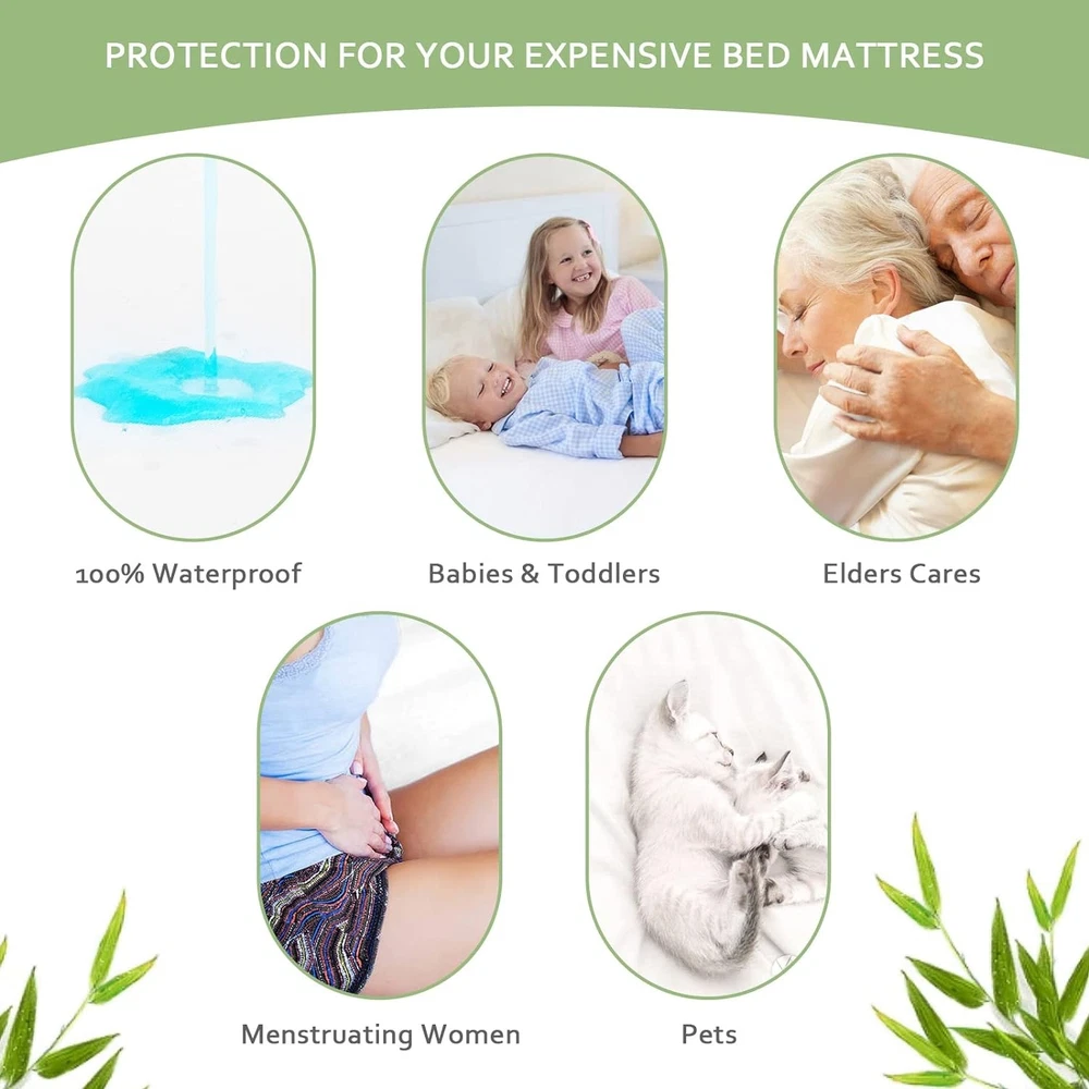Full Size Mattress Protector Waterproof 2 Pack, Bamboo Cooling Full, White Product Details Brand: Moonsea Color: White Size: Full Fabric Type: 35% Viscose Made from Bamboo, 65% Polyester Special Feature: Cooling Closure Type: Pull On Product Care Instructions: Machine Wash Water Resistance Level: Waterproof Age Range (Description): Adult Material: Bamboo Viscose Number of Items: 2 Manufacturer: Moonsea Item Firmness Description: Soft Product Dimensions: 75 x 54 x 14 inches Item Weight: 2.77 pounds Soft and Breathable: Breathable viscose made from bamboo jersey mattress protector allows air circulate to achieve comfortable sleep which is also resistance odor, rapid odor removal. Waterproof and Noiseless: Mattress protector was viscose made from bamboo jersey fabric with 100% waterproof TPU Layer on the back to protect your precious mattress keep away from all kinds of liquids including fluids, perspiration, bedwetting and stains. Because of the noiseless TPU layer, you will not hear any noise when you sleep on it. Elastic Stretchy Skirt: Full mattress protector delicately design dress up with elastic stretch skirt up to 14" height to fully fit on your full size mattress for your diverse needs. Machine Washable: Washing in cold water (to keep your mattress protector from shrinking over time), so the full mattress protector will feel as quiet and comfy as before. Imported.