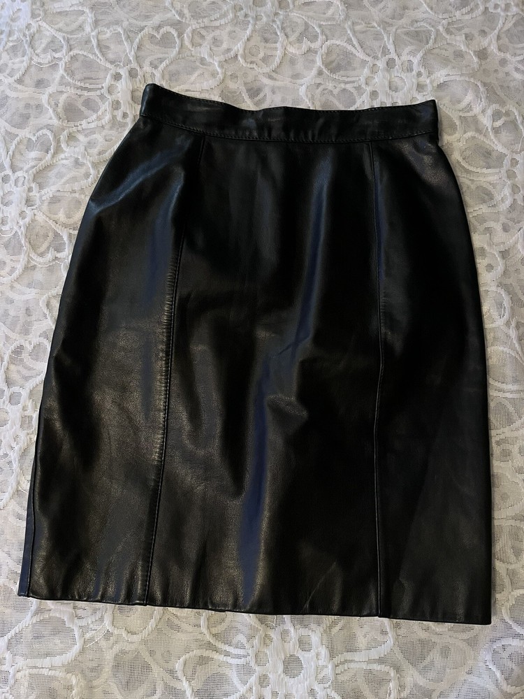 Vintage 90’s mini leather skirt small. Excellent like new condition measurements : 12” flat waist 20” long 17” mid width flat tag is small recommend xs- s or 2/4