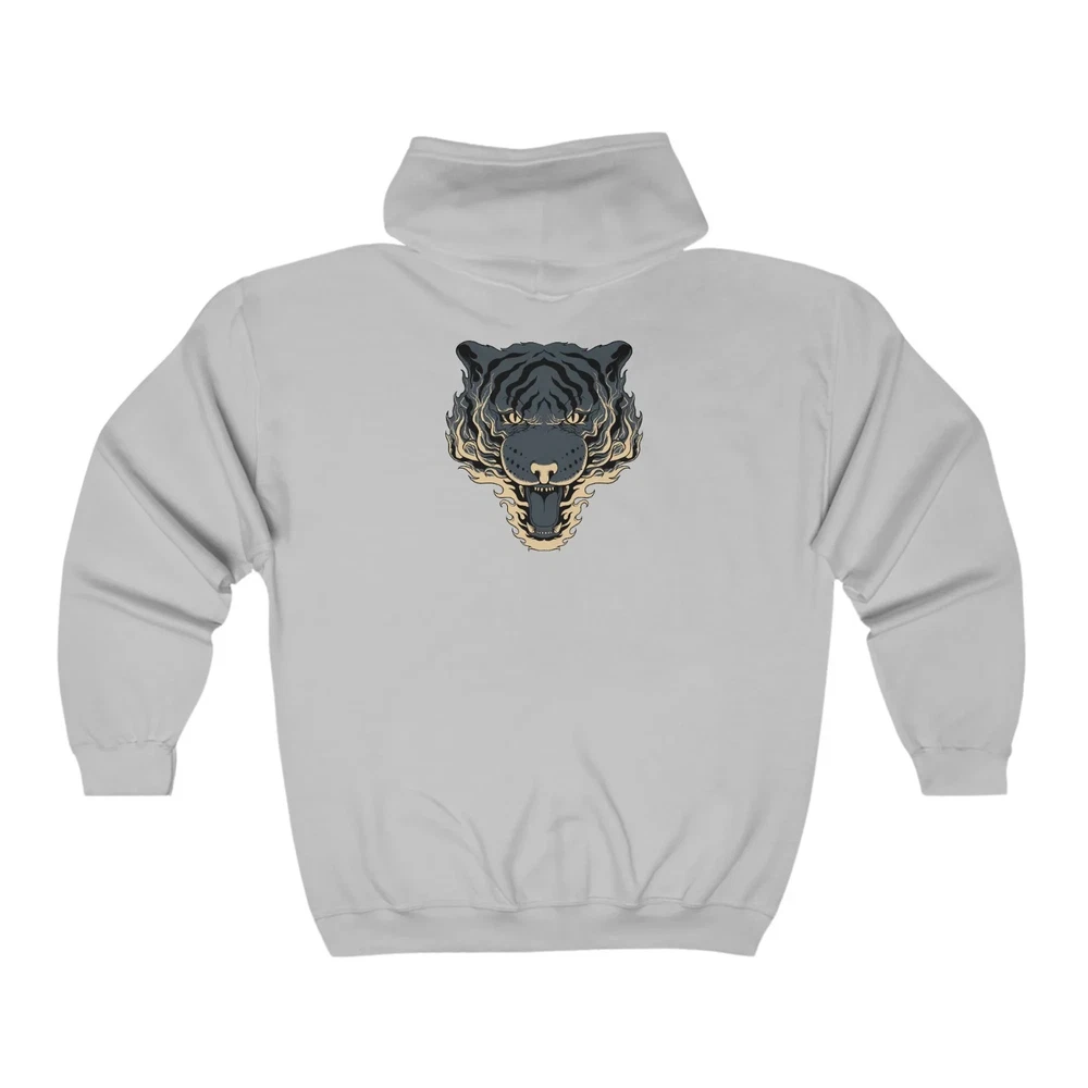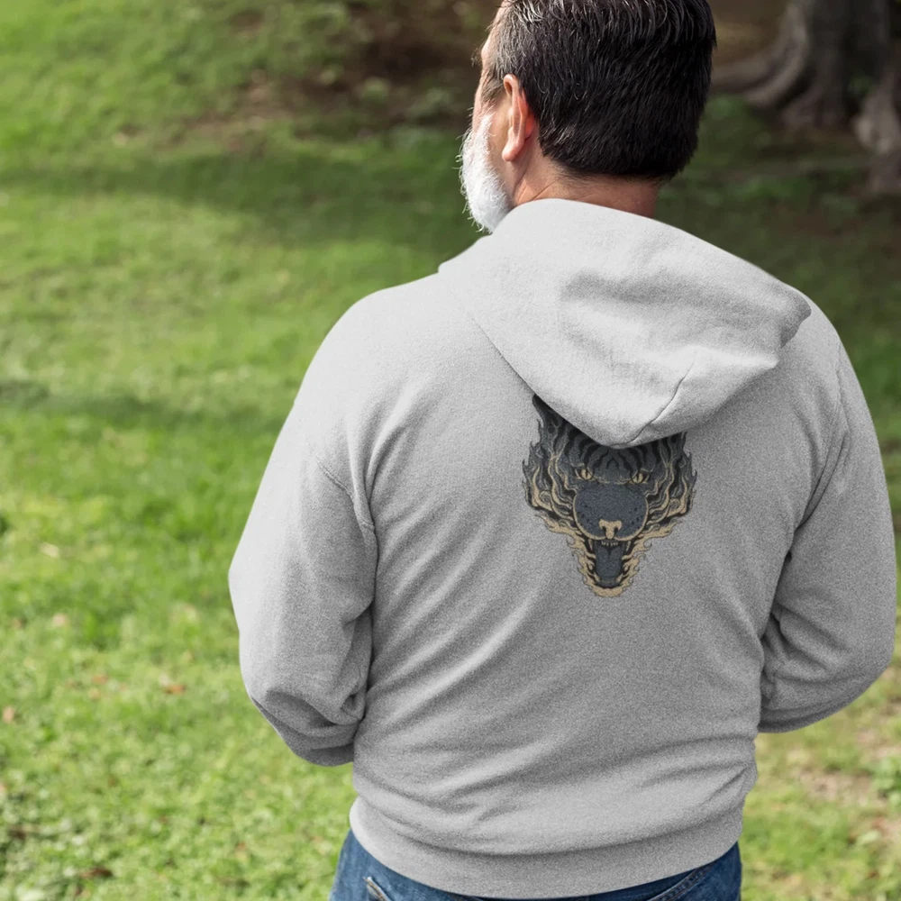Stay warm and stylish with our Full Zip classic fit tiger back print Hoodie for men. Made with a classic fit design and featuring a unique tiger back print, this hoodie is both comfortable and eye-catching. Perfect for any casual occasion, it will keep you warm and make a Statement. Overview; The classic comfy zip-up, featuring air-jet spun yarn for a softer fleece with reduced pilling. Once put on, it will be impossible to take off. Durable silver-colored metal zipper with metal puller. This heavy blend hooded sweatshirt is relaxation itself. Made with a thick blend of cotton and polyester, it feels plush, soft and warm, a perfect choice for any cold day. In the front, the spacious kangaroo pocket adds daily practicality while the hood's drawstring is the same color as the base sweater for extra style Points. Fabric; Made with a medium-heavy fabric (8.0 oz/yd² (271 g/m²)) that consists of 50% cotton and 50% polyester for that cozy feel and warmth you need in a Hoodie. Fit; The classic fit along with the pouch pocket make for a highly comfortable, scratch-free wearing experience. Adjustable hood with self-colored woven cord and buttonhole openings for the Cord. Fabric blends; Heather Sport colors -may contain more than 50% Polyester.