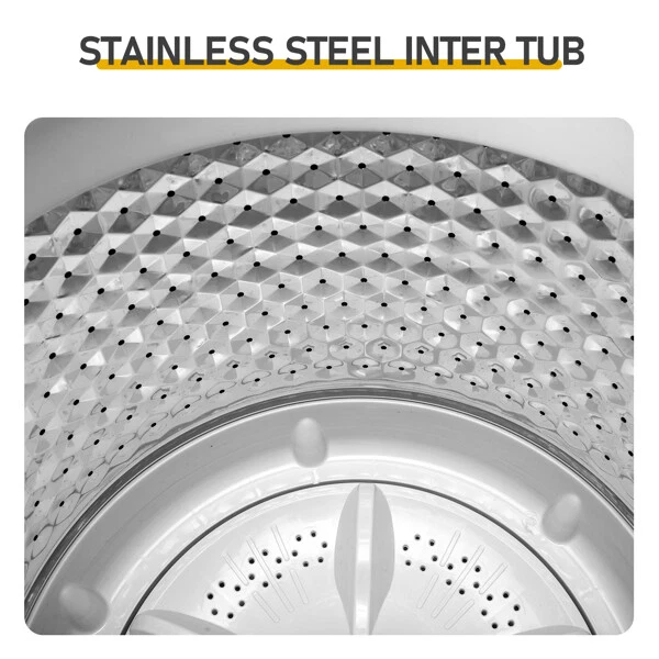 This washing machine is a game-changer! Compact yet powerful, it handles up to 17.6 lbs effortlessly. The full-automatic feature makes laundry a breeze, and the top-load design is super convenient. Despite the factory water test, it arrived clean and ready to use. Perfect for small spaces without sacrificing performance—highly recommend for hassle-free washing!