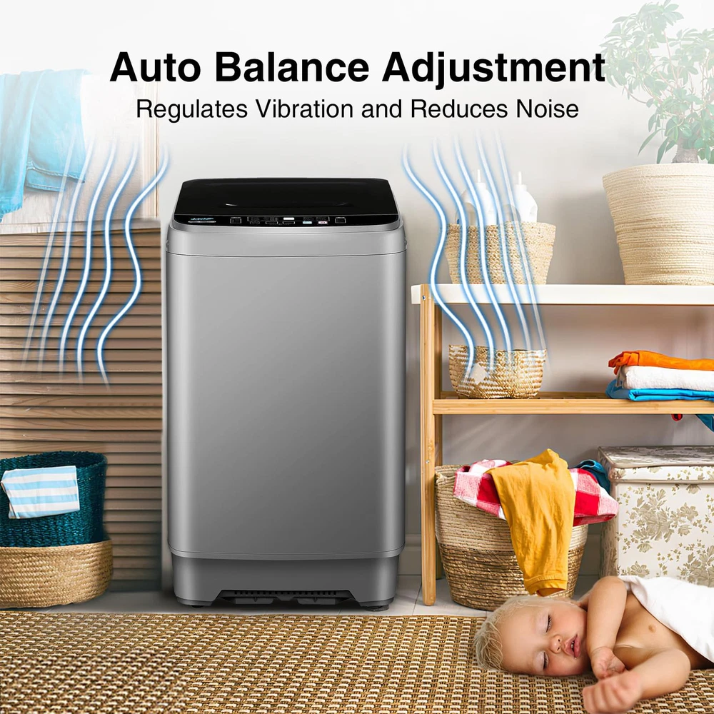 【Versatile Control Panel】The full automatic washing machine features a multi-functional control panel with 10 washing programs, 4 water level modes, and 8 water level selections for added convenience. The LED display provides clear visibility of the laundry time, while the child lock ensures the washing machine operates safely to protect your family. 【Family-Friendly Capacity】With an inner tub capacity of 17.7 lbs, this portable washer is perfect for families with 3-4 members. The washing machine includes highlighted reference weights for different types of clothes in both the description and images, making it easier for you to load laundry and save energy and effort. 【Portable and Space-Saving Design】Ideal for households with limited space like RVs, camping sites, dorms, and apartments, our washing machine is compact and convenient. It requires minimal storage space and is pre-assembled for hassle-free operation, offering an easy and space-saving laundry solution. 【Automatic Imbalance Adjustment】Unlike other portable washers that may shake or vibrate excessively during washing or spinning, our laundry washing machine is equipped with an automatic imbalance adjustment system. This feature ensures safety, minimizes noise, and provides a stable laundry experience for you and your family. 【Effortless Full Automatic Operation】Designed as a 2-in-1 compact washer, this portable washing machine offers full automation. Simply select the washing and spinning program along with the water level, and let the mini laundry washer work independently without constant supervision. Save time and focus on other important tasks while the machine takes care of your laundry needs.