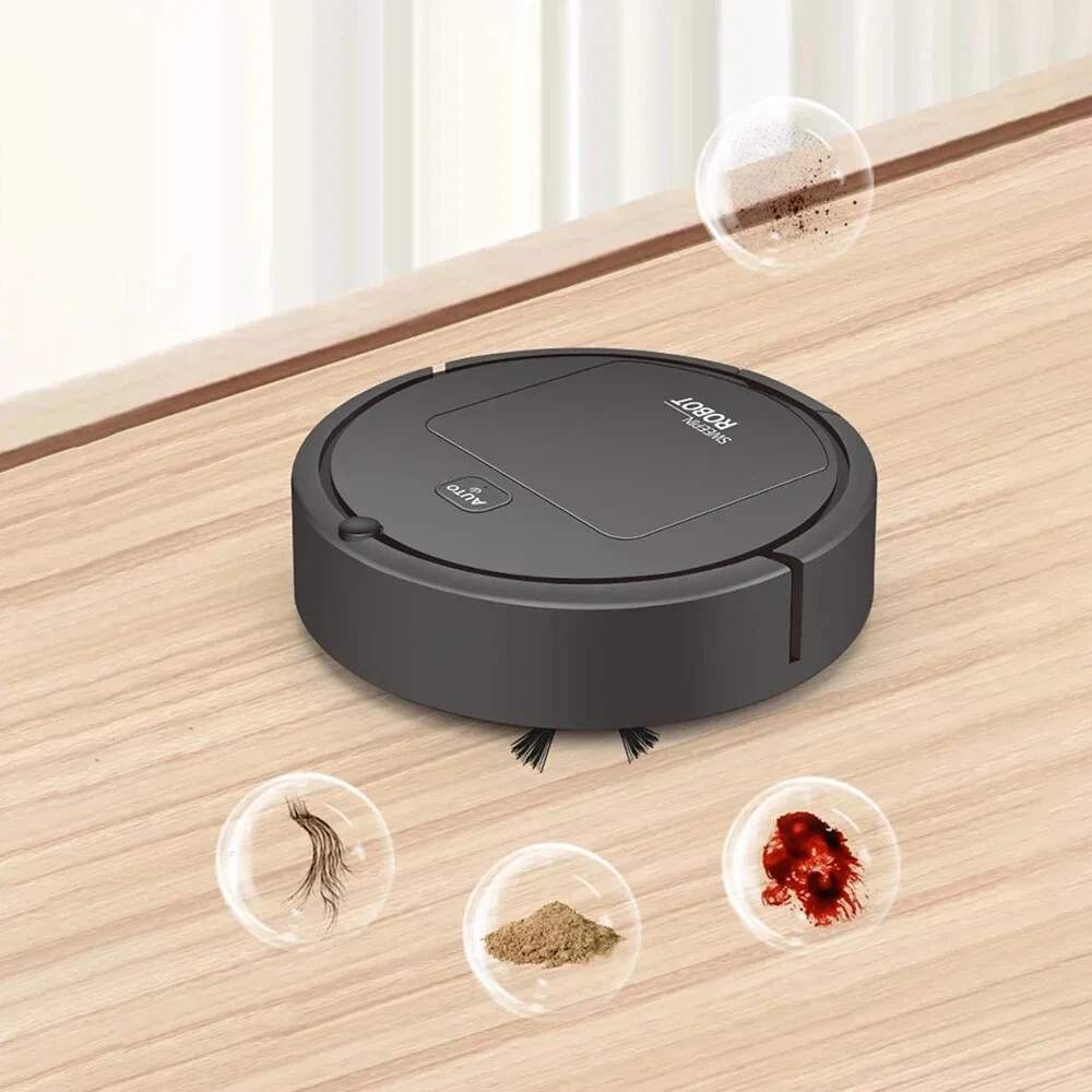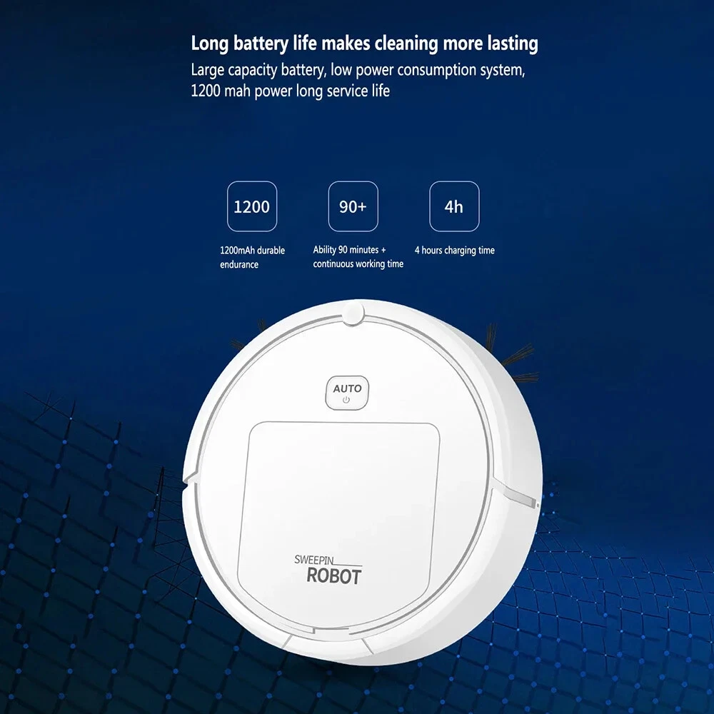 Fully automatic smart sweeper three-in-one USB vacuum cleaner wet and dry cleaning machine household appliances Product Description: Sweeping machine style: intelligent robot Sweeping machine function: all-in-one machine for sweeping, suction and dragging Colors: White, Black Cleaning route: random Operation mode: mechanical Power mode: USB Timing function: no timing Switch type: touch Use environment: household Rated voltage: 3.7V Rated power: 4.5W Applicable area: less than 70 square meters Capacity: 200ML Suction: 1000~1499Pa Battery life: 0-60 minutes Whether with a remote control: No LCD display: no Is there a scheduled appointment function: No Whether there is a virtual wall: no Collision Protection: Mechanical Collision Whether to charge automatically: No Motor type: common motor