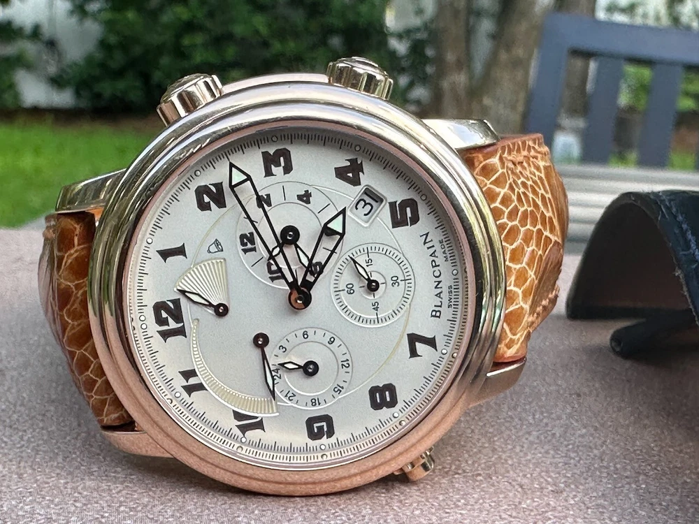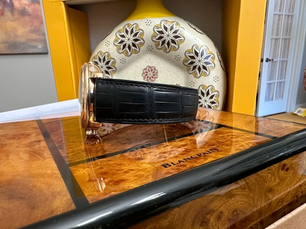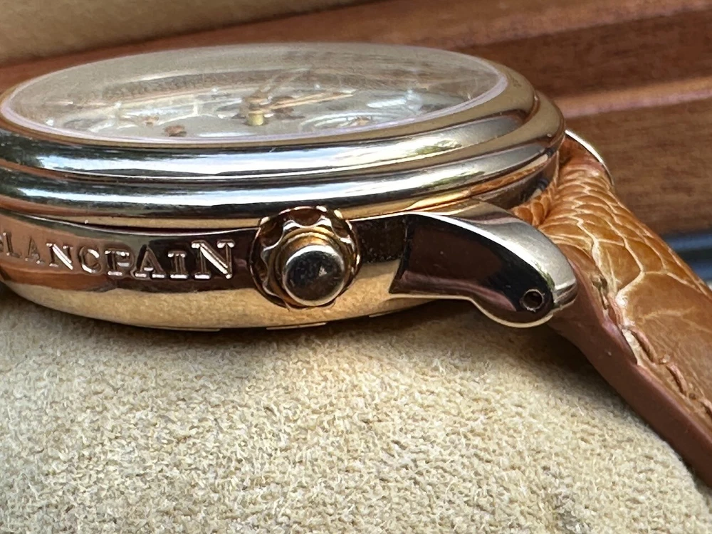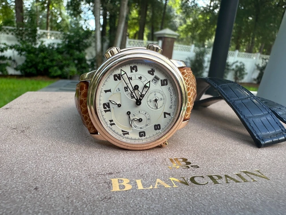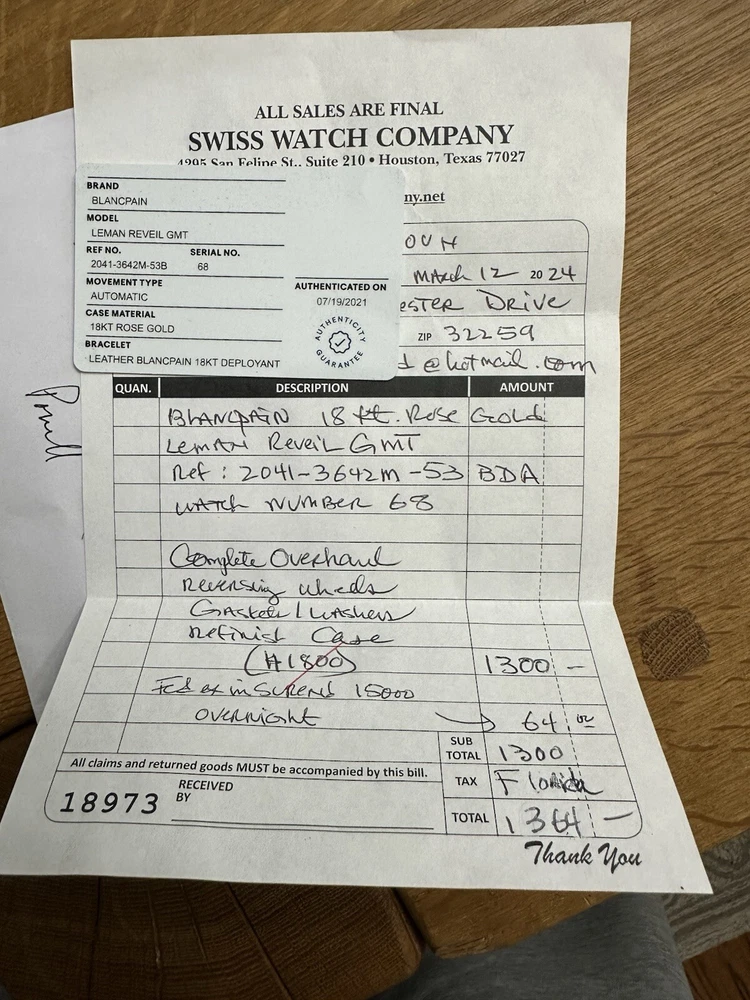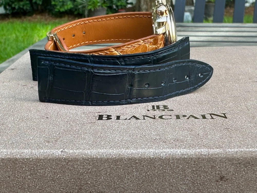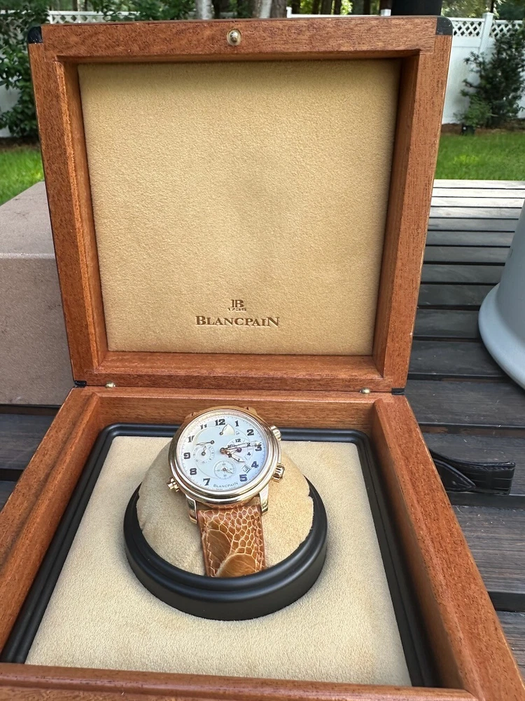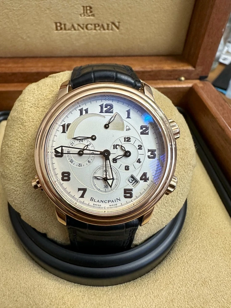 The watch has been serviced and comes with the remaining warranty through March. It is being sold as is because the ebay authenticators have ALREADY authenticated the watch and I do not want the hassle of sending my watch to them again because they DO NOT KNOW HOW TO OPERATE THE FUNCTIONS! It has an alarm feature that is set via the crown and is turned on and off via a different crown. The watch alarm works if the crown is in the zero position. I will provide instructions to the buyer. Contact me with ANY questions. The picture of the ebay authentication AND the Service receipt are above. Description This pre-owned Blancpain Leman Reveil GMT 2042-3642-M is in excellent condition and comes with: original Blancpain bookletS and BOXES. I have had the watch verified to be working as designed and expected. AGAIN, THIS IS SOLD AS IS. IT HAS REMAINING SERVICE WARRANTY AS INDICATED ON THE ATTACHED RECEIPT.