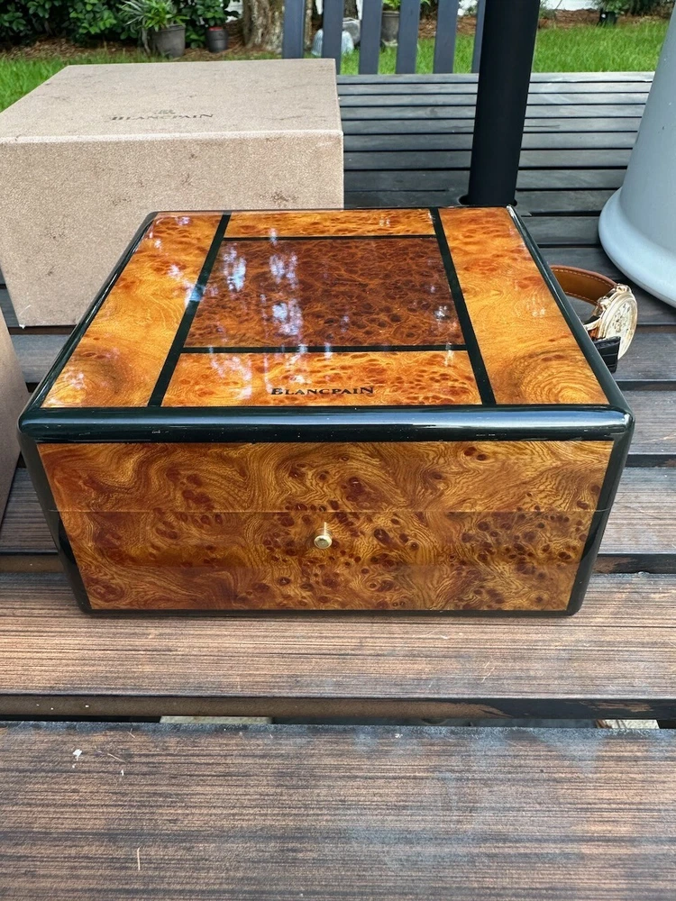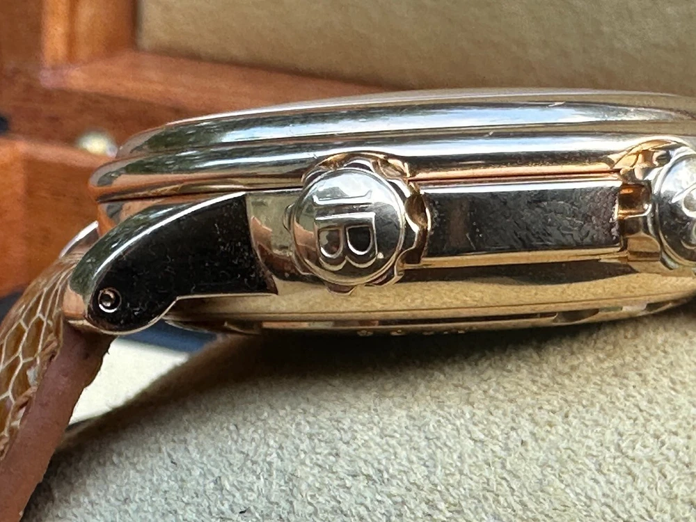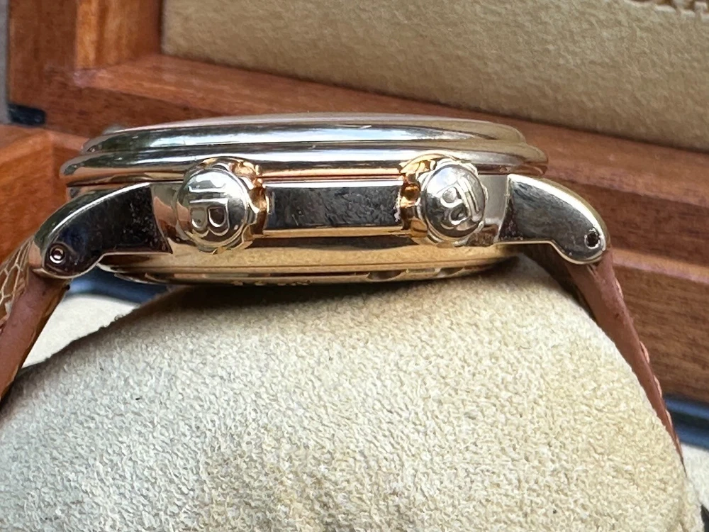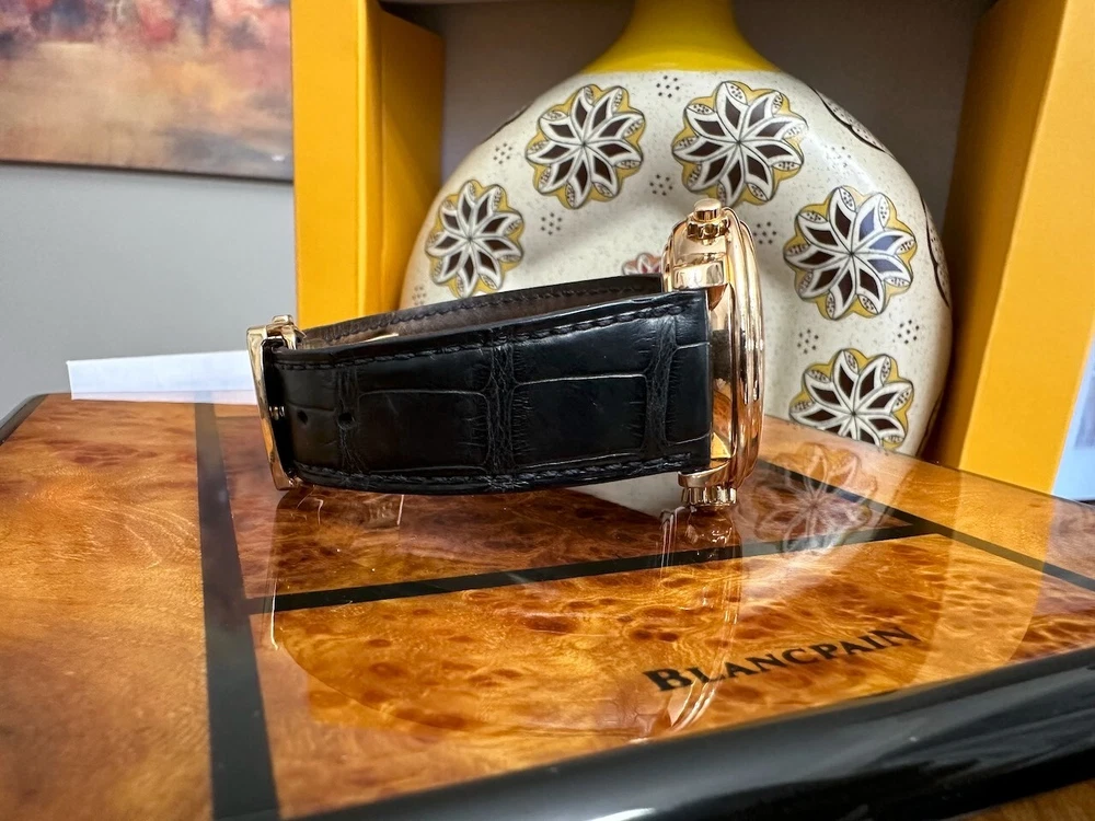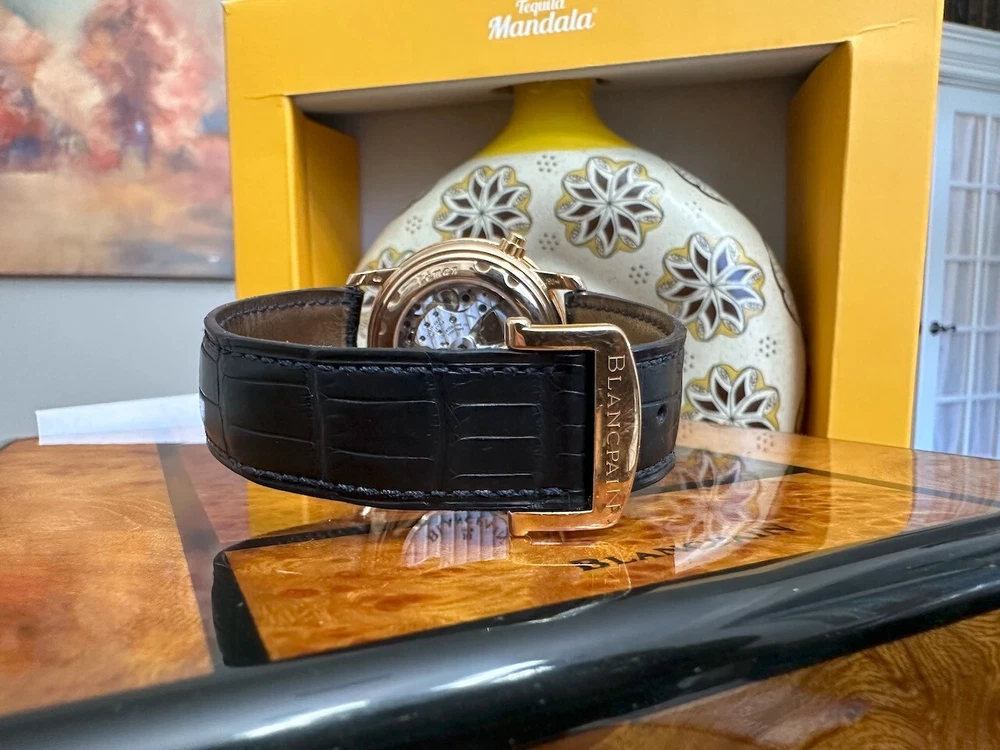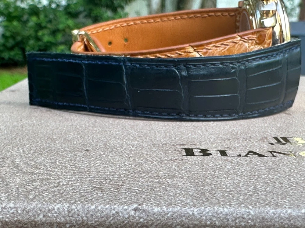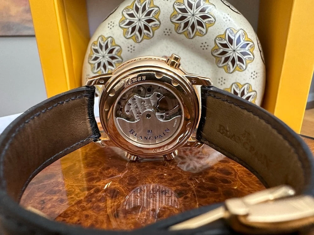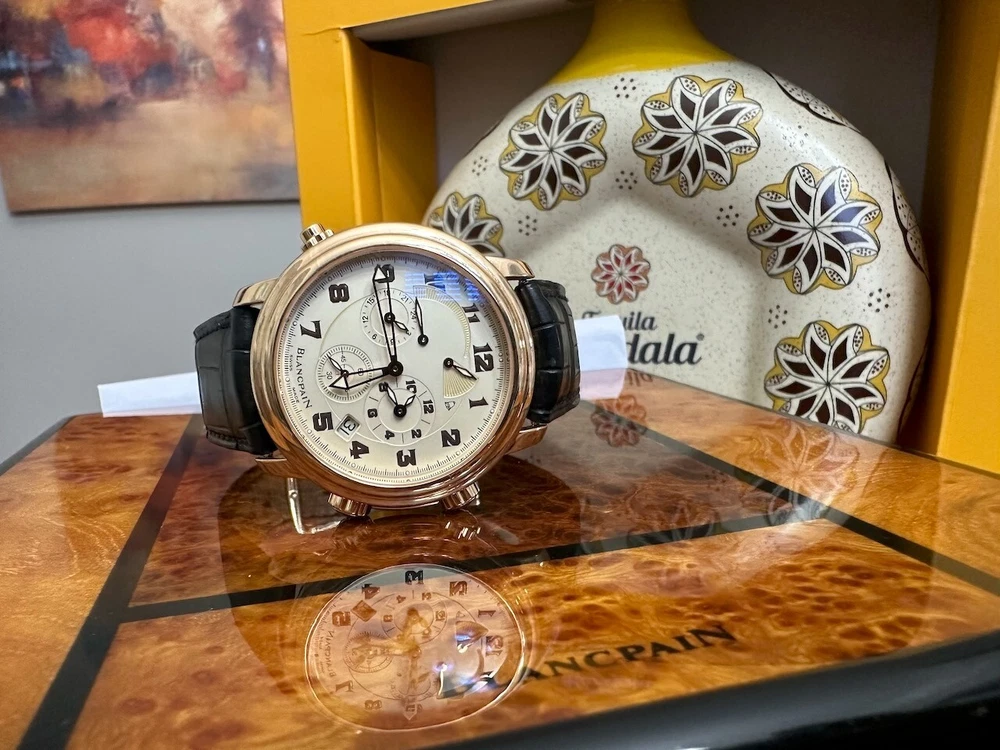 The watch has been serviced and comes with the remaining warranty through March. It is being sold as is because the ebay authenticators have ALREADY authenticated the watch and I do not want the hassle of sending my watch to them again because they DO NOT KNOW HOW TO OPERATE THE FUNCTIONS! It has an alarm feature that is set via the crown and is turned on and off via a different crown. The watch alarm works if the crown is in the zero position. I will provide instructions to the buyer. Contact me with ANY questions. The picture of the ebay authentication AND the Service receipt are above. Description This pre-owned Blancpain Leman Reveil GMT 2042-3642-M is in excellent condition and comes with: original Blancpain bookletS and BOXES. I have had the watch verified to be working as designed and expected. AGAIN, THIS IS SOLD AS IS. IT HAS REMAINING SERVICE WARRANTY AS INDICATED ON THE ATTACHED RECEIPT.
