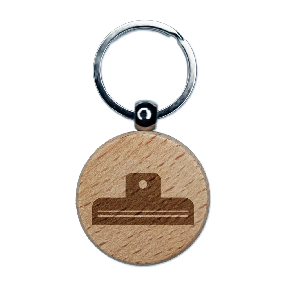 Fun Binder Paper Clip Engraved Wood Round Keychain Tag Charm