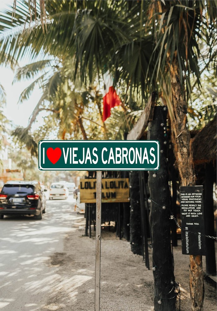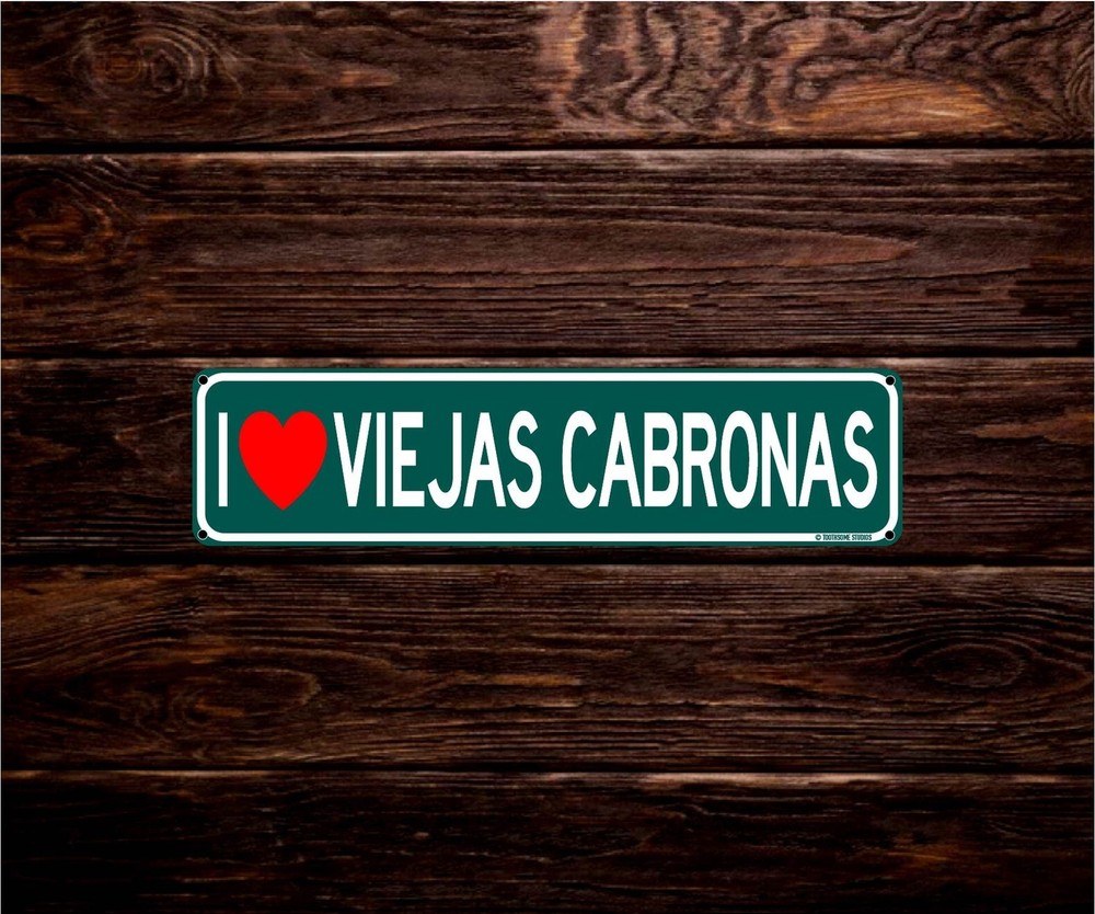 I Love Viejas Cabronas Funny Mexican Spanish Humor 16" x 4" Street Sign Home Bar Latino Humor Wall Decor (ILoveViejasStreet) Product Details Style: ILoveViejasStreet Brand: Toothsome Studios MPN: 1 UPC: 369918359731 EAN: 0369918359731 Color: Green, White Brand: Toothsome Studios Material: Stainless Steel, Plastic, Metal Theme: Words & Quotes Recommended Uses For Product: Home bar decoration, Humorous wall decoration, Man cave or she shed decoration Mounting Type: Wall Mount Product Dimensions: 4"L x 16"W Shape: Rectangular Style: ILoveViejasStreet Pre-printed: JASA CAR UPC: 369918359731 Item Weight: 5.6 ounces Manufacturer: Toothsome Studio Country of Origin: China Item model number: 1 High Quality Metals - Novelty street sign made of corrosion resistant tin and measures approximately 16 by 4 inches Aesthetic Design - Wall decorations are perfect for any man cave, she shed, bar, pub, pool deck, garage, shop, home office, barn, cabin, or college dorm for a thematic touch or humorous effect High Quality Print - Vivid and colorful HD printed art will make a splash on any wall inside your home kitchen, bedroom, bathroom or basement Perfect Gift - Unique and humorous designs are sure to put a smile on anyones face during Christmas, birthdays, Father's Day, Mothers Day, housewarming, or an anniversary Rounded Corners - Ensure safe handling when mounting and dismounting or gifting to a friend, family member or significant other Easy To Mount - Comes with pre drilled holes in each corner for easy hanging on any wall space, fence, garage or door Ships New - Ships quick and brand new sealed in factory packaging with our brand approved stamp
