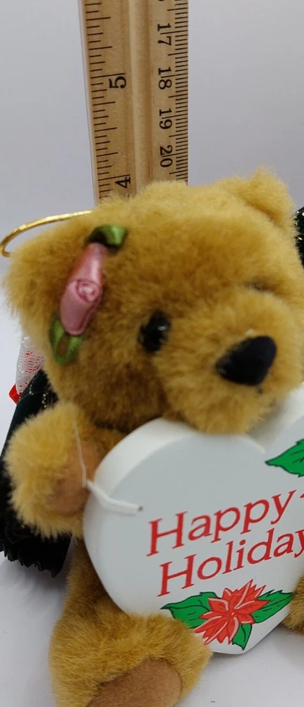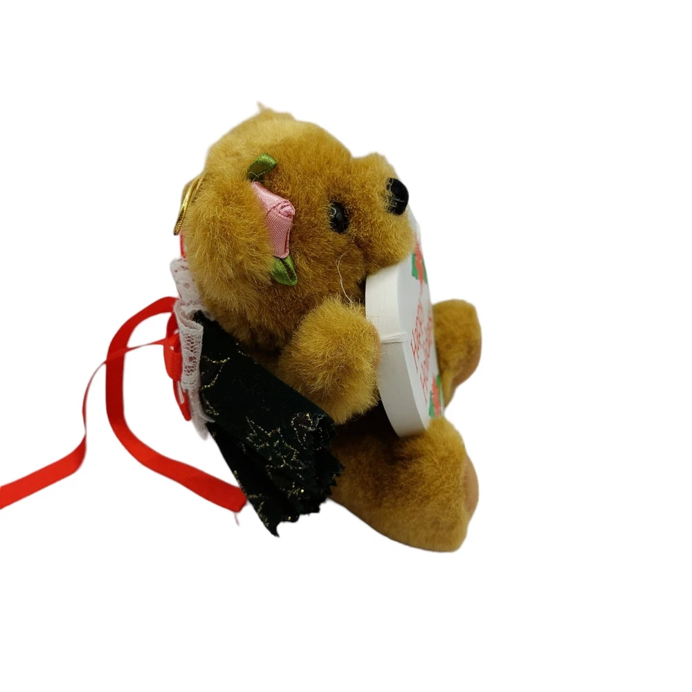 Fun World Christmas Bear Plush Happy Holidays Ornament Stuffed Animal