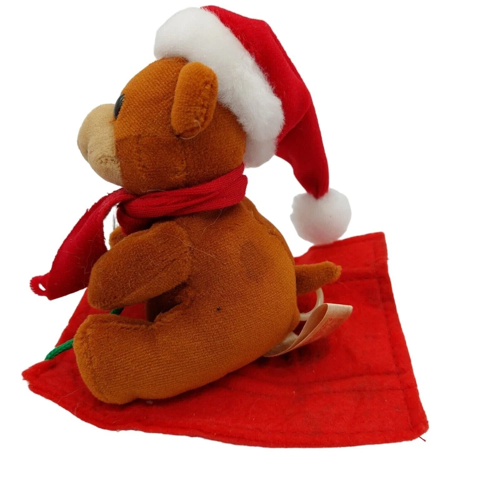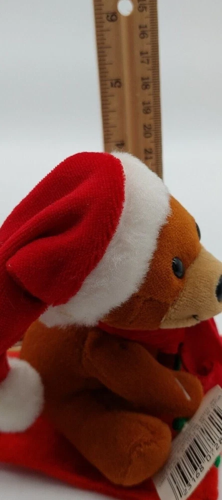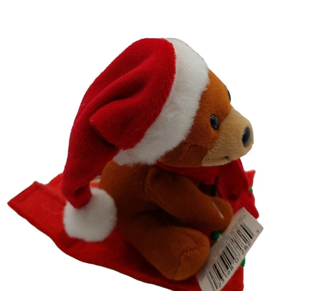 Fun World Plush Stuffed Animal Bear Pull String Christmas Scarf Holiday 4"
