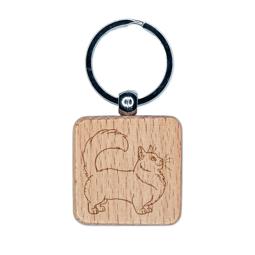 Fun-Loving Munchkin Cat Engraved Wood Square Keychain Tag Charm