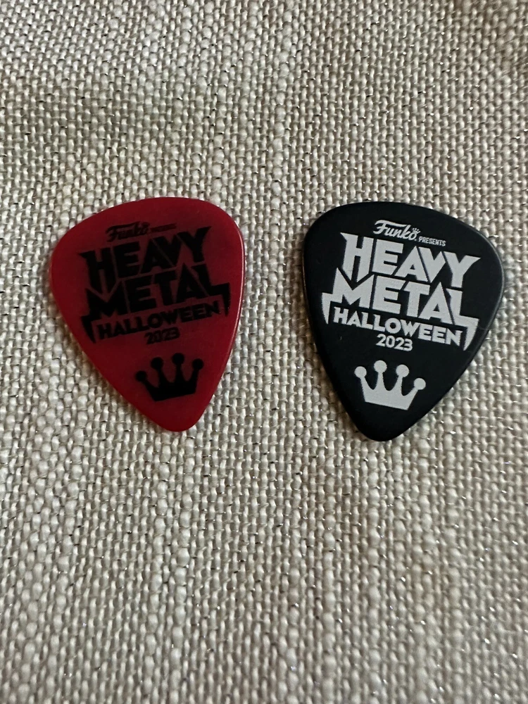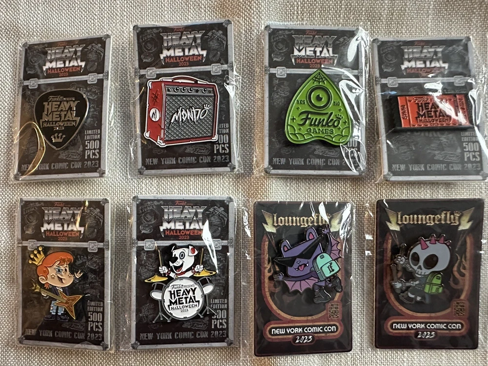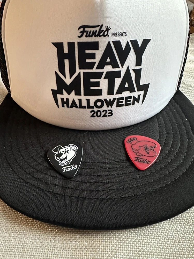 Funko Heavy Metal Halloween NYCC 2023 8 Pin Complete Set Guitar Pick Hat Freddy Funko LE 500 These pins and guitar picks were giveaways at the Funko Booth Ships immediately