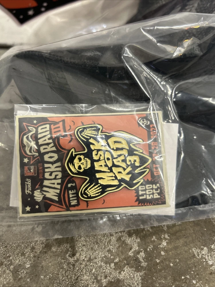 Get ready for Comic-Con with the Funko Mask-o-Raid 3 2023 Hat and Pin! This limited edition set includes a unique Reaper character hat and a pin, perfect for any Funko collector or fan of comics. The hat features the iconic Funko mask and is made of high-quality materials for durability and comfort. The pin is a great addition to any collection or can be worn on the hat for a complete look. This exclusive Funko item is a must-have for any collector, and with only 500 made, it's sure to be a rare find. The hat and pin are part of the Funko collection and are modeled after the popular Funko Mask-o-Raid 3 character. Whether you're a fan of comics or just looking for a unique piece to add to your collection, this Funko hat and pin set is sure to impress. This is a San Diego, comic con Museum exclusive only 500 were made. Make sure to look at the photos to see exactly what you’re getting and condition of item.