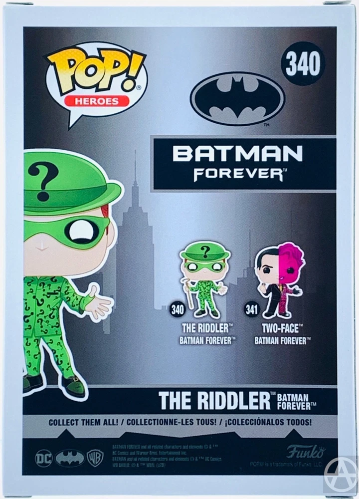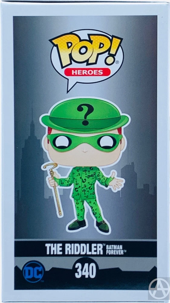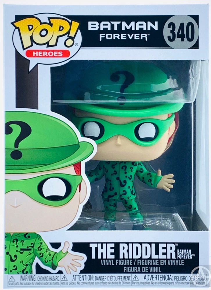 Funko POP! Heroes: THE RIDDLER #340 Batman Forever (1995) - New This Pop! stylized figure features The Riddler as seen in the 1995 movie Batman Forever. Product Features 3.75 inches (9.5cm) Made of vinyl From Batman Forever Urban stylized design Comes in window-box packaging Box Contents Riddler Pop! #340 Condition Description Brand New Ships in an acid-free POP Protector for added protection during transit. Please carefully review & inspect all listing photos. Buy with Confidence Orders are shipped within 3 business days or less Scam/Fraud Prevention: Some items in our store are equipped with tamper evident seals for buyer/seller protection. We only accept eBay Managed Payments. We only ship to addresses on file with Ebay, no exceptions. Items are shipped with tracking via Stallion Express & Chit Chats : Canada Post (CPC) Note: individually sold Comic Books are not tracked and are shipped with Canada Post Lettermail FleetOptics UniUni ICS Courier United States Postal Service (USPS) United Parcel Service (UPS) Federal Express (FedEx) Thank you for visiting!! Please feel free to ask any questions!!! 100% Genuine Canadian Seller - We value & understand the importance of proper packaging, especially when it comes to collectibles. Please be assured: your order will be carefully packed so that you receive it in excellent condition.
