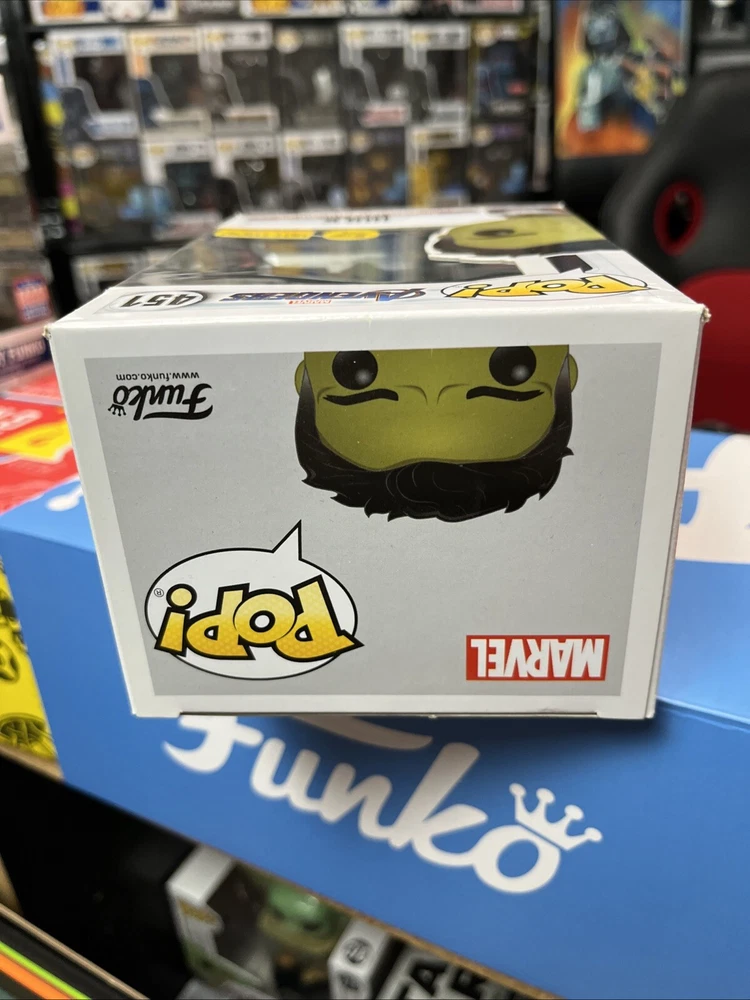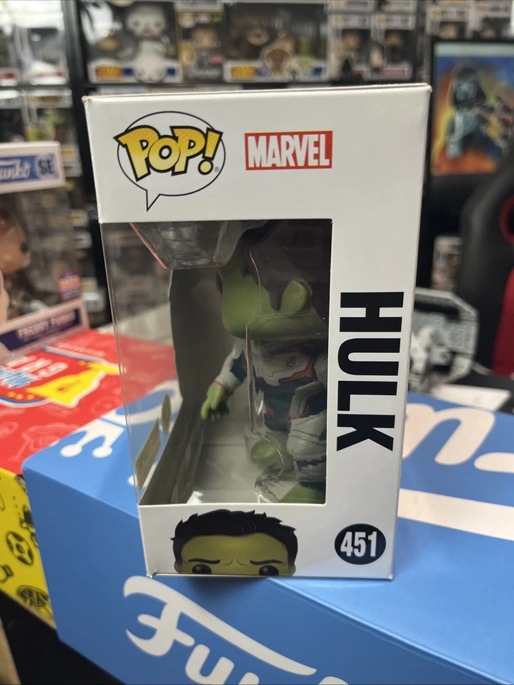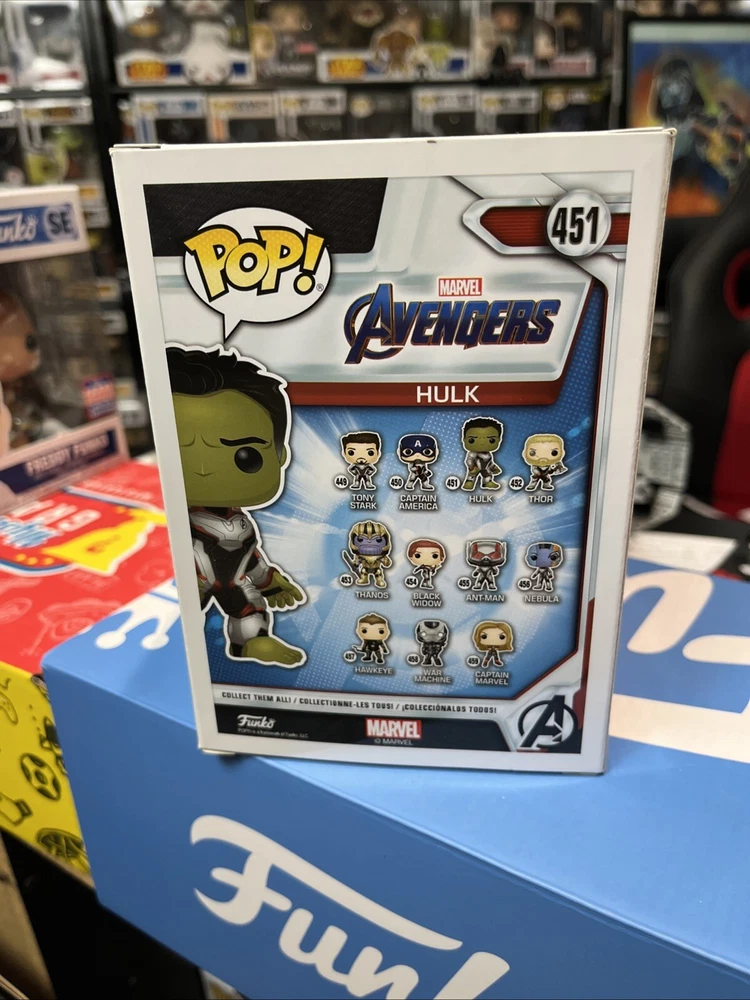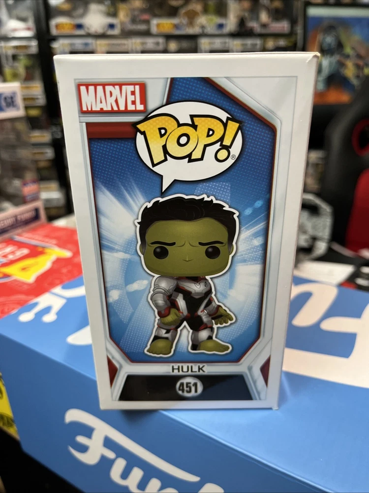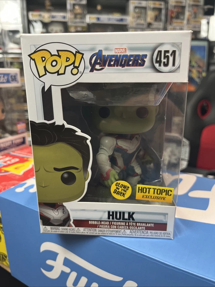 This Funko POP! Marvel vinyl figure is a must-have for any collector. Featuring the iconic Hulk character from the hit movie Avengers: Endgame, this figure is part of the 2019 Pop & Tee-Q2 series and comes in box number 451. It is a Hot Topic exclusive, making it a rare find for fans of the franchise. The figure is made of high-quality vinyl material and features a stunning glow-in-the-dark design, making it a standout addition to any collection. With its exclusive status and unique design, this Funko POP! Marvel Avengers Endgame 451 figure is a valuable addition to any collector's shelf.