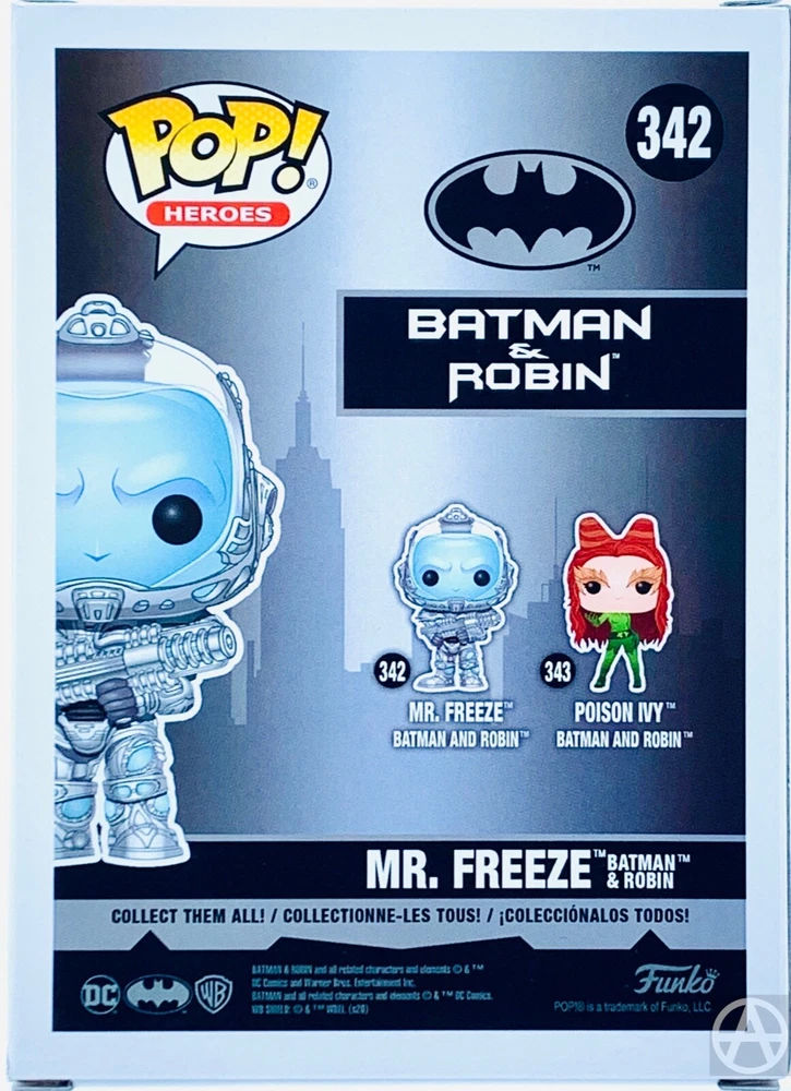 Funko POP! Heroes: Batman & Robin (1997) Film - MR. FREEZE #342 & Free POP Protector - New This Pop! stylized figure is based on actor Arnold Schwarzenegger's portrayal of the supervillian Mr. Freeze as seen in the 1997 film Batman & Robin. Pop! figures bring your favourite characters to life with a unique stylized design. Each vinyl figure stands 3.75 inches (9.5cm) tall and comes in window box packaging, making them great for display! Product Features 3.75 inches (9.5cm) Made of vinyl From Batman & Robin Film (1997) Urban stylized design Comes in window-box packaging Box Contents Mr. Freeze Pop! #342 Condition Description Brand New Ships in an acid-free POP Protector for added protection during transit. Please carefully review & inspect all listing photos. Buy with Confidence Orders are shipped within 3 business days or less Scam/Fraud Prevention: Some items in our store are equipped with tamper evident seals for buyer/seller protection. We only accept eBay Managed Payments. We only ship to addresses on file with Ebay, no exceptions. Items are shipped with tracking via Stallion Express & Chit Chats : Canada Post (CPC) Note: individually sold Comic Books are not tracked and are shipped with Canada Post Lettermail FleetOptics UniUni ICS Courier United States Postal Service (USPS) United Parcel Service (UPS) Federal Express (FedEx) Thank you for visiting!! Please feel free to ask any questions!!! 100% Genuine Canadian Seller - We value & understand the importance of proper packaging, especially when it comes to collectibles. Please be assured: your order will be carefully packed so that you receive it in excellent condition.