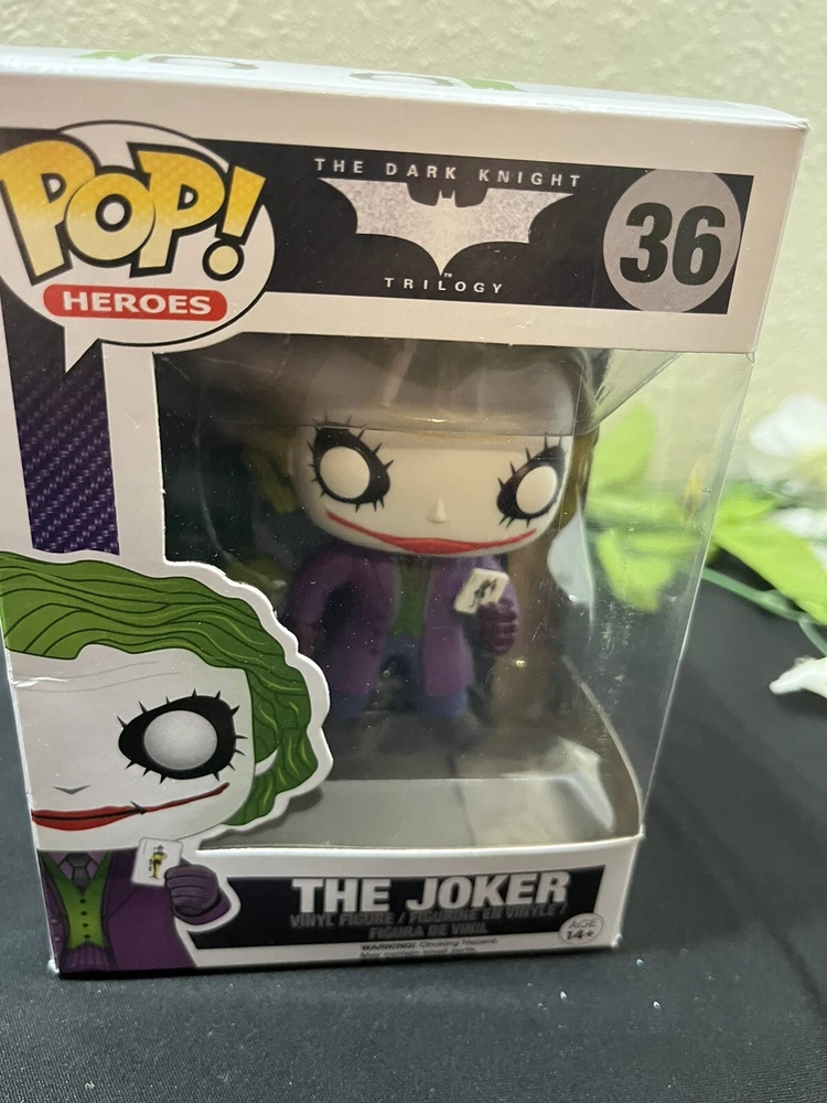 Introducing the Funko POP Joker vinyl figure from the Dark Knight S1 series. This highly collectible figure features the iconic Heath Ledger portrayal of the Joker in the DC Universe. Made of high-quality vinyl material, this Pop! Vinyl figure stands at approximately 3.75 inches tall and comes in box number 36. Perfect for fans of the Batman movies and comics, this Funko POP Joker figure is a must-have addition to any collection. With its detailed design and vibrant colors, it's sure to impress. Don't miss out on the chance to own this amazing piece of memorabilia.