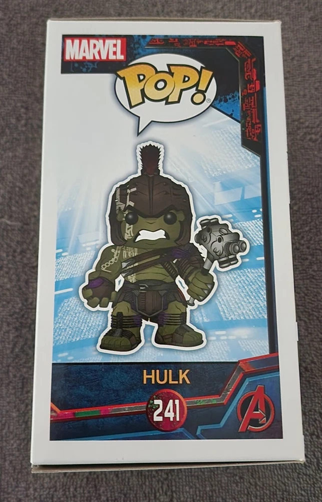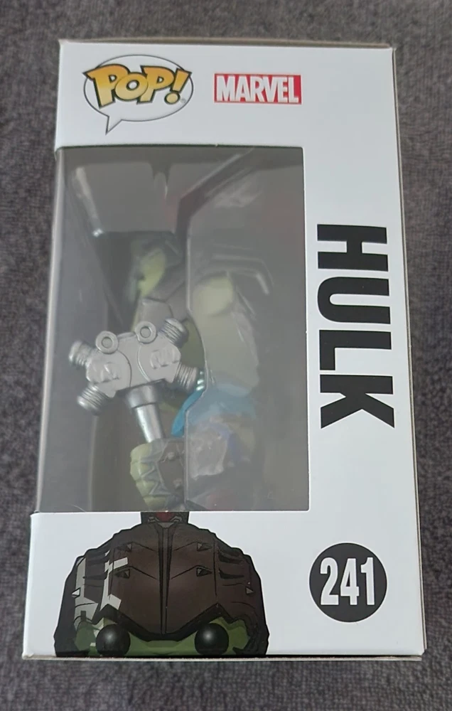 Number in Pack: 1 Material: Vinyl Collection: Marvel Time Period Manufactured: Modern (1970-Now) Theme: Movies Color: Multicolor Box Number: 241 Character: Hulk Age Level: 3+ Features: Common Autographed: No Movie: Thor: Ragnarok Item Height: 4 in Modified Item: No Size: Standard Type: Vinyl Figure Packaging: Original (Unopened) Exclusive Event/Retailer: Marvel Collector Corps Vintage: No Product Line: Pop! Brand: Funko Model: Funko Pop Franchise: Marvel (MCU) Customized: No Series: Thor Custom Bundle: No