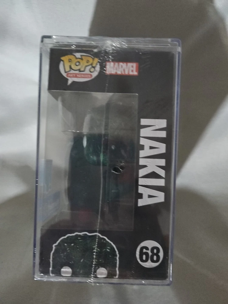 This Funko Pop! Art Series vinyl figure features Nakia from the Marvel franchise's Black Panther Legacy S1. The multicolored figure stands at 4 inches tall and comes in its original packaging, unopened with a protector. This Walmart exclusive item is part of the Pop! Artist Series and has a box number of 68. Made in Vietnam, this collectible figure is a must-have for any Marvel or Black Panther fan. The figure showcases intricate details and is perfect for display or as a gift. Don't miss out on the chance to add this exclusive item to your collection.