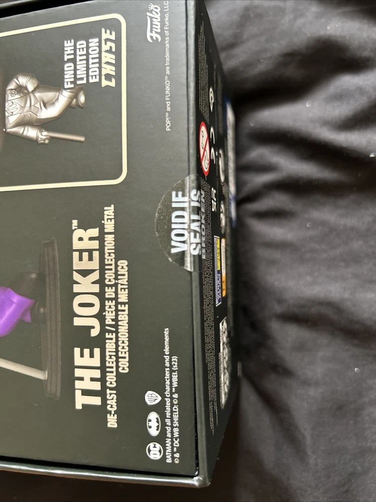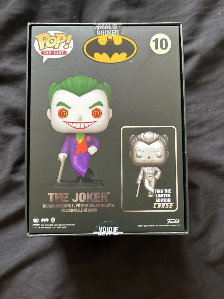 Introducing the Funko Pop! Diecast figure of The Joker from DC Comics 2023 Q3. This exclusive collectible features the iconic character in a die-cast format, perfect for any fan of comics or the DC Universe. The box number for this figure is 10 and it comes from the popular Pop! Diecast collection by Funko. This vinyl figure is a must-have for any collector or enthusiast of The Joker or DC Comics. With its intricate details and high-quality design, it's sure to be a standout addition to any collection. Don't miss out on the chance to own this exclusive Funko Pop! Diecast figure.