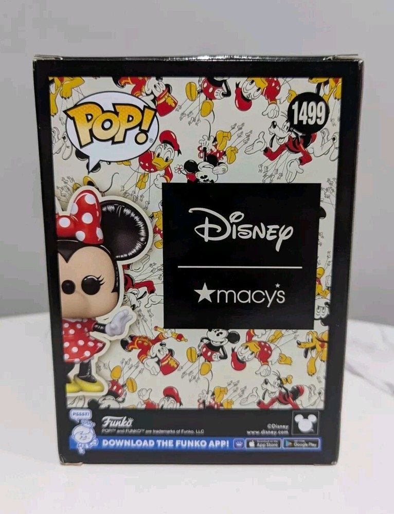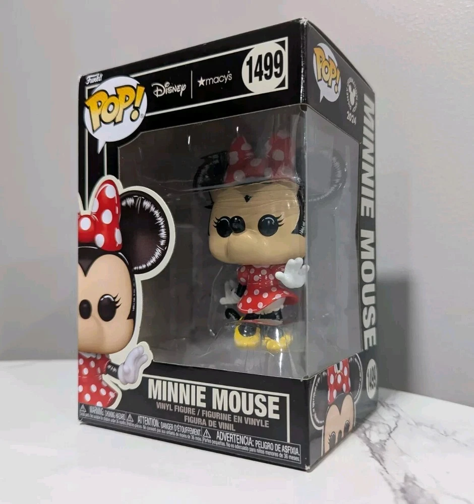Funko Pop! Disney Minnie Mouse #1499 Macy’s Exclusive Disney Celebration Shop READ PLEASE --> You will receive the exact Funko Pop pictured above. The Funko is new, HOWEVER the box has various signs of wear, including some corner damage and creases/tears near the flaps. Please see the provided photos for more condition details and to assess the overall condition for yourself. Packed and shipped with care. Item will be bubble wrapped in an appropriate size box. ---------------------------------------------------------- This Funko Pop! Disney Minnie Mouse #1499 Macy’s Exclusive Disney Celebration Shop vinyl figure is a must-have for any Disney fan. The colorful and adorable Minnie Mouse stands at 4 inches tall and comes with a stand. This officially licensed product is part of the Disney Pop! collection and is a hard-to-find collectible. The figure is made of high-quality vinyl material and is in its original (unopened) packaging. Perfect for collectors of all ages, this Funko Pop! Disney Minnie Mouse #1499 is a great addition to any Disney-themed collection. Thanks for looking!