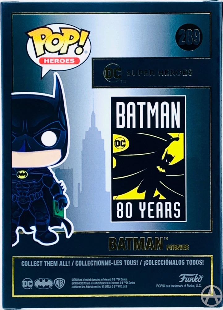 Funko POP! Heroes: BATMAN #289 Batman Forever (1995) Film - 80th Anniversary - New From his first introduction in Detective Comics #27, released back in 1939, The Dark Knight is turning 80! Batman has since appeared in countless comics, video games, television episodes (animated and live action), movies, battled epic Super-Villains and become a cornerstone of pop culture. The 1995 Batman Pop! offers a more modern interpretation of the Batsuit. Product Features 3.75 inches (9.5cm) Made of vinyl Urban stylized design Comes in window-box packaging Box Contents Batman Pop! #289 Condition Description Brand New Ships in an acid-free POP Protector for added protection during transit. Please carefully review & inspect all listing photos. Buy with Confidence Orders are shipped within 3 business days or less Scam/Fraud Prevention: Some items in our store are equipped with tamper evident seals for buyer/seller protection. We only accept eBay Managed Payments. We only ship to addresses on file with Ebay, no exceptions. Items are shipped with tracking via Stallion Express : Canada Post (CPC) Note: individually sold Comic Books are not tracked and are shipped with Canada Post Lettermail FleetOptics UniUni ICS Courier United States Postal Service (USPS) United Parcel Service (UPS) Federal Express (FedEx) Thank you for visiting!! Please feel free to ask any questions!!! 100% Genuine Canadian Seller - We value & understand the importance of proper packaging, especially when it comes to collectibles. Please be assured: your order will be carefully packed so that you receive it in excellent condition.