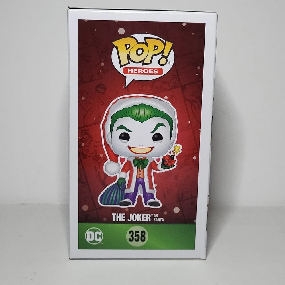 Delve into the world of DC Universe with the Funko Pop! Heroes: DC Super Heroes - The Joker (as Santa) #358 vinyl figure. This collectible captures the iconic villain in his festive best, a unique twist on the classic Santa Claus attire. Crafted with the attention to detail Funko is known for, it's a must-have for fans and collectors alike. Part of Funko's beloved Pop! series, this figure joins the ranks of other superhero and villain collectibles. The Super Heroes model, part of the Heroes collection, stands out with its larger size, ensuring it's a prominent display piece. Whether you're a dedicated collector or simply appreciate the artistry, the Joker as Santa is a holiday classic that transcends the ordinary.