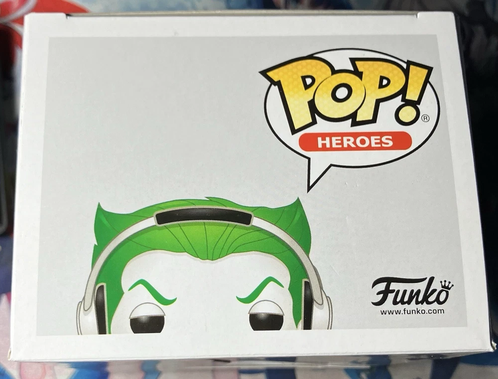 This is a GameStop exclusive pop of The Joker with a pin included. Couple of small box issues (see last 2 images) not visible from the front. Ships in a soft protector.