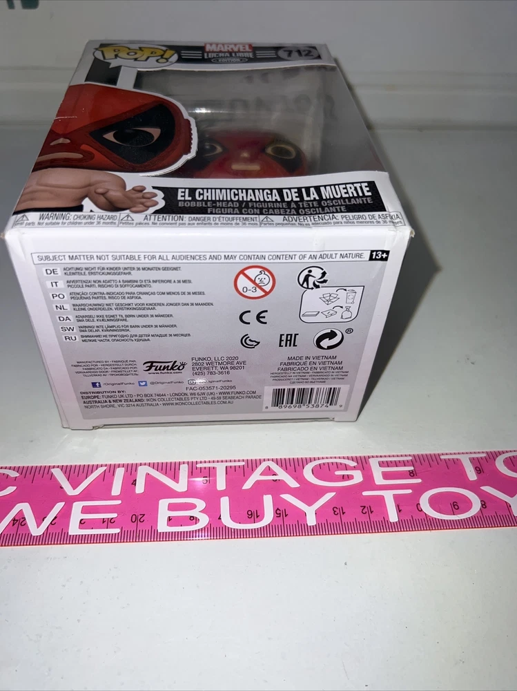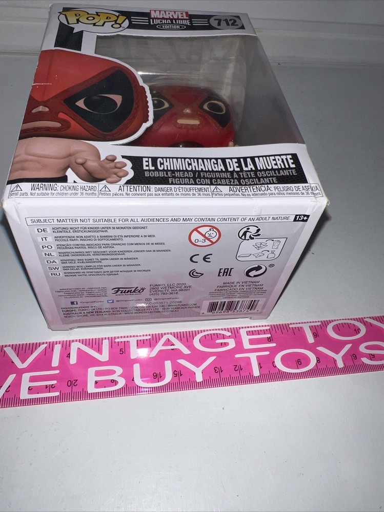 Collection: Marvel Product Line: Pop! Vinyl Character: Deadpool Display Name: El Chimichanga De La Muerte Box Number: 712 gtin13: 0889698538749 Brand: Funko Type: Vinyl Figure, Pop! Vinyl Series: Marvel Luchadores S1 Franchise: Marvel Theme: Comics, Comic Books Release Year: 2020 MPN: 53874 UPC: 0889698538749 Release Date: 10/27/2020