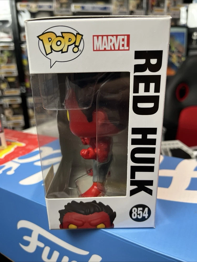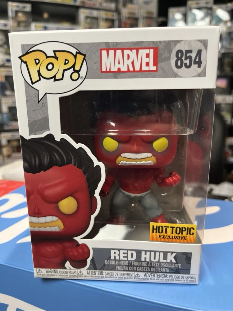 Unleash the power of the Red Hulk with this exclusive Funko Pop! Vinyl figure, a must-have for any Marvel enthusiast. This collectible, bearing the distinctive Funko Pop! box number 854, hails from the Marvel Comics 2021 Q2 series and is crafted from durable vinyl, showcasing the vibrant red hue synonymous with this rampaging character. Exclusively available through Hot Topic, this Red Hulk figure stands out with its unique Pop! Vinyl design, capturing the essence of the comics' artwork. Whether for display or as part of a larger collection, this piece is a standout tribute to the Marvel franchise and a prized find for fans and collectors alike.
