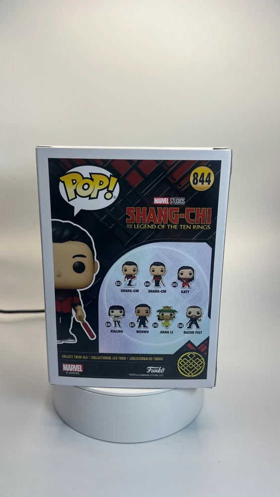 The Funko Pop! vinyl figure features Shang-Chi from Marvel Studios' "The Legend of The Ten Rings" movie. This exclusive Marvel Collector Corps edition showcases Shang-Chi in his iconic pose, adding to any Marvel or comic-themed collection. The figure is part of the Pop! Vinyl series, crafted from vinyl material, and is numbered as Box 844 in the collection. Perfect for fans of the Marvel franchise and collectors of unique Pop culture items.